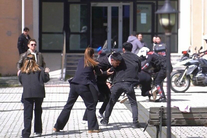 Öte yandan, gerçeğini aratmayan kavgayı polis ekiplerinin ayırdığı anlar amatör kameraya yansıdı