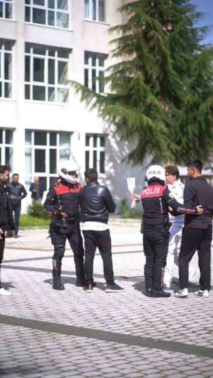 Uluslararası Ticaret Topluluğu öğrencileri adına konuşan Ahmet Şener, “Emniyet teşkilatının 180. kuruluş yıldönümü nedeniyle böyle bir etkinlik düzenledik. Kavga ihbarında bulunduk. Polis ekipleri gayet hızlı şekilde geldi” dedi.