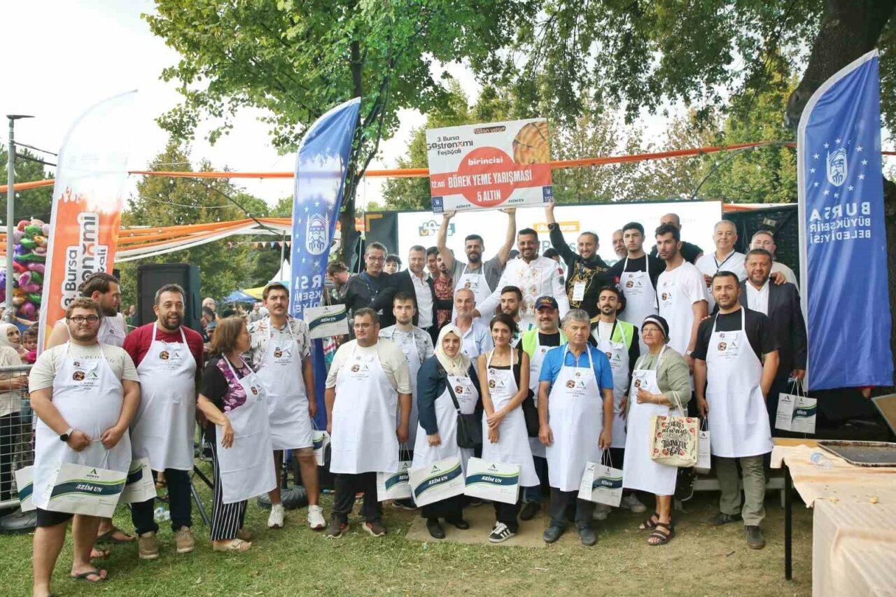Dünyanın en büyük böreğini yaparak Guinnes Rekorlar Kitabı’na giren Hasan Acar, Bursa Gastronomi Festivali’nde börek yeme yarışması düzenledi. Yarışmada 15 metre börek yiyen adam, 5 gram altının sahibi oldu.