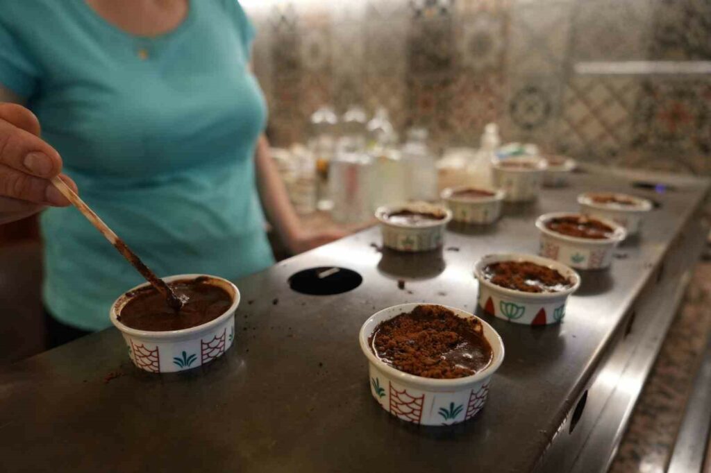 İsli kahvenin ününün Türkiye sınırlarını aşarak dünyada tanınır hale geldiğini ifade eden Budak, “Biz kahvemizi fincanda pişiriyoruz. İçeriğinde 12 çiçek özü var. Bu karışımlardan dolayı telvesi asla batmıyor. İçenler de hem telvesini hem de suyunu aynı anda içtikleri için ayrı bir keyif alıyorlar. Bu kahvemizin ünü hem yurt içinde hem de yurt dışında çok yayıldı. Hatta yerli ve yabancı turistler de gelmeye başladılar. Özellikle büyükşehirlerimizden inanılmaz bir yoğunluk var. Özel bir kahve olmasıyla beraber adeta Bursa’nın bir markası haline geldi” diye konuştu.