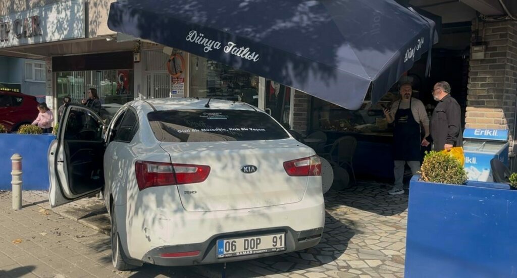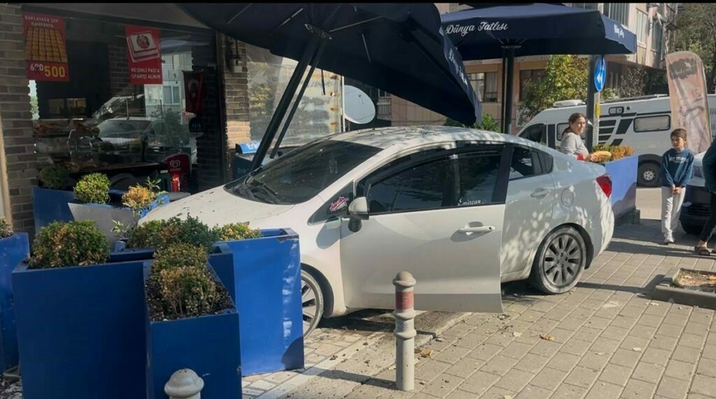 Kaza, merkez Osmangazi ilçesi Darmstad Caddesi üzerinde meydana geldi. Edinilen bilgiye göre, Emircan İ. İdaresindeki 06 DOP plakalı otomobiliyle seyir halindeki sürücü, tali yoldan çıkan 15 milyon liralık cipe çarpmamak için manevra yaptı. Direksiyon hakimiyetini kaybeden sürücü, bir tatlıcı dükkanın bahçesine daldı. O anlar kameraya yansırken, işletmede müşteri olmaması çevredekilere derin bir nefes aldırdı. Kazayı hafif sıyrıklarla atlatan sürücü ise kontrol amaçlı Çekirge Devlet Hastanesine kaldırıldı.