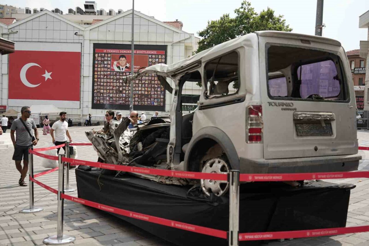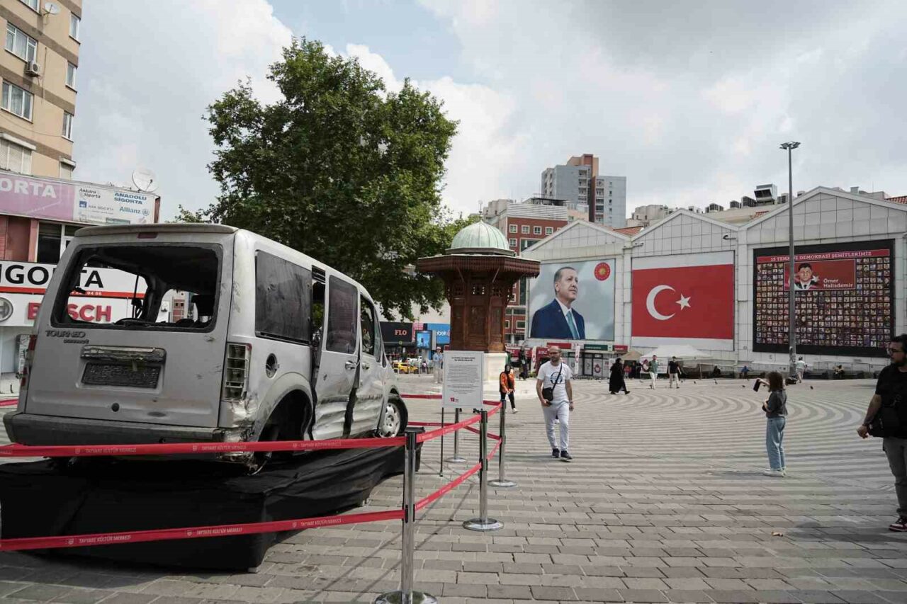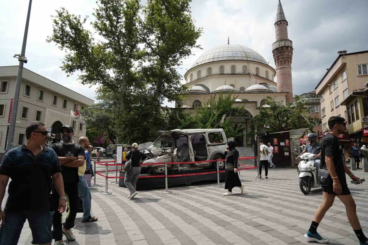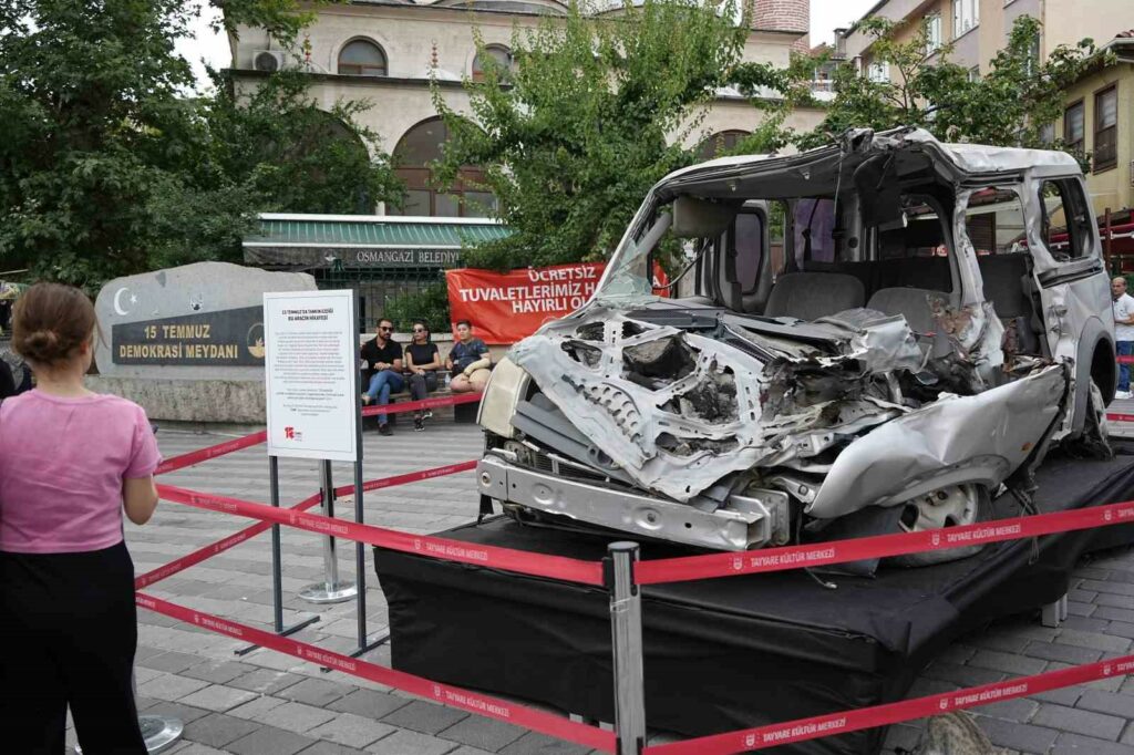 Bursa’da 15 Temmuz’da tankın ezdiği ticari araç, 15 Temmuz Demokrasi Meydanı’nda sergileniyor.