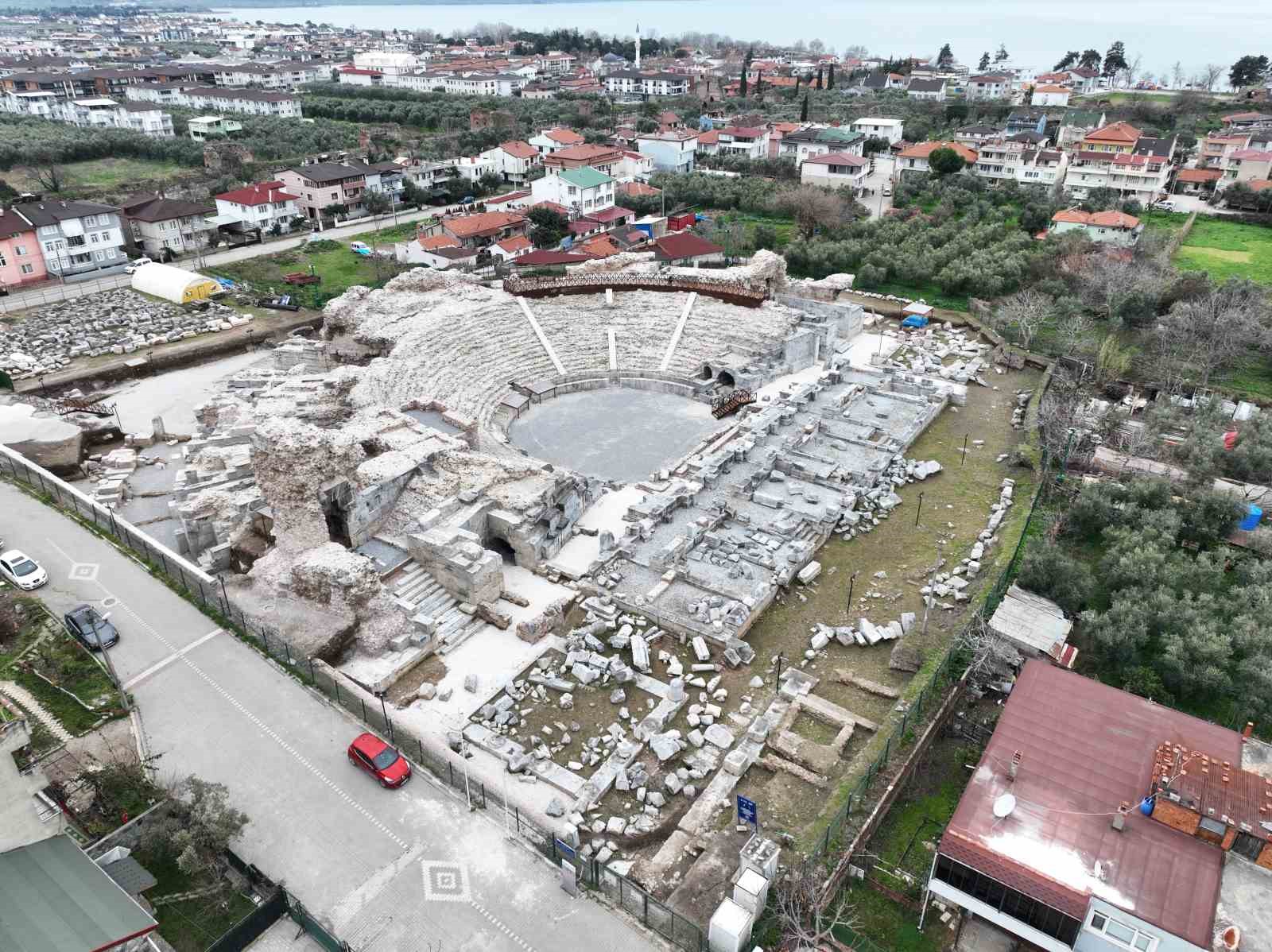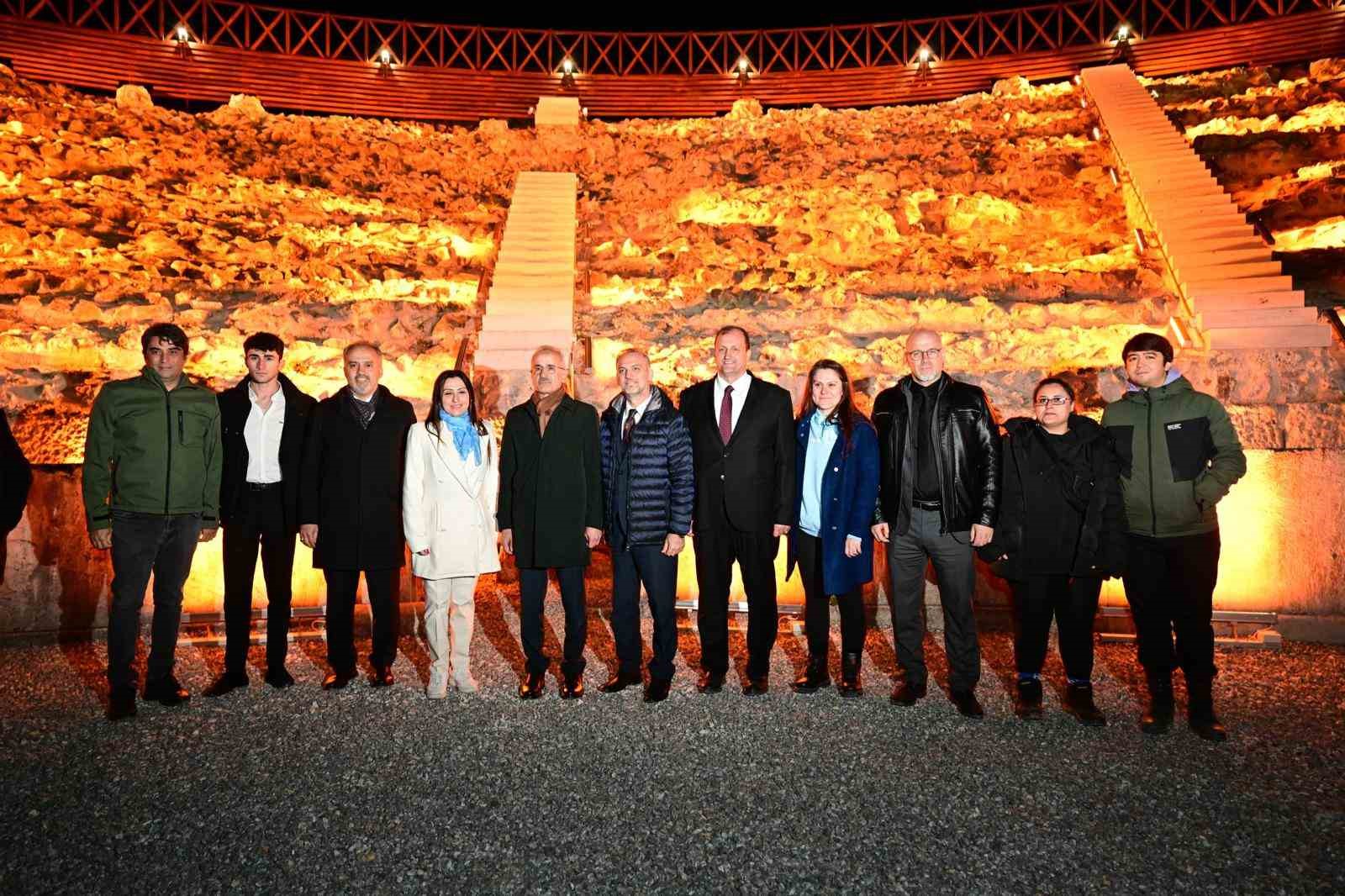 Ulaştırma ve Altyapı Bakanı Abdülkadir Uraloğlu, Türkiye’yi tarif ederken en değerli arazi yapısı olarak Bursa’yı gösterdiğini belirtti. İpek Yolu’ndan modern ulaşım yollarına kadar tüm ulaşım koridorlarının geçtiği merkez olarak tanımlayan Bakan Uraloğlu, “Bu tarihi yapılar da bu kıymetin yapı taşlarıdır. Tarihi tiyatroyu yakından görme fırsatı bulduğum için çok mutlu oldum. Tarihi bölgelerde emek harcayan başta kazı ekibi olmak üzere herkesi tebrik ediyorum. İnşaat mühendisi olarak bu tür yapıları fırsat buldukça geziyorum. Buradaki iç içe giren kemerlerin nasıl kesiştiğini ve düz bir arazide nasıl tonozlarla bir yapının yükseltildiğini gördüm. Çok mutlu oldum. Bu eser bir gayretin neticesinde ortaya çıkarıldı. Biz ülkemizin tarihine sahip çıkıyoruz. Büyükşehir Belediye Başkanı Alinur Aktaş, 2017’den bu yana sadece insana dokunmamış, tarihe de dokunmuş. Bu eserin gün yüzüne çıkmasına büyük katkı sunduğu için Başkanımız Alinur Aktaş’a da teşekkür ediyorum. Bunlar insanlık tarihinin eseridir. Korumak da bize yakışır. Cumhurbaşkanımız da bu tür çalışmalara önem veriyor. Bizler de bu şiarla çalışıyoruz. Hayırlı uğurlu olsun” diye konuştu.
