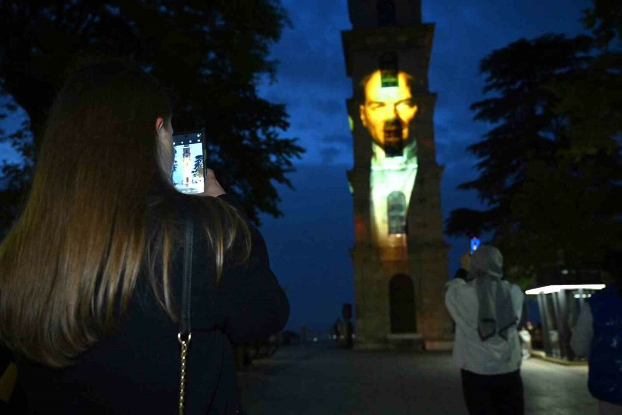 Emre Fel konserinin ardından Hüdavendigar Kent Parkı’nda yapılan su perdesi mapping gösterisiyle izleyenlere görsel şölen yaşatıldı. Işık ve ses şovlarıyla su perdesine ‘kurtuluş mücadelesi’nin yansıtıldığı gösteriyi, Bursalılar büyük ilgiyle izledi. Ardından Tophane Saat Kulesi’nde yapılan ışıklı mapping gösterisi kente 19 Mayıs coşkusunu bir kez daha yaşattı. Tarihi yapıya ‘Atatürk‘ silüeti yansıtılırken, o anlar canlı olarak Hüdavendigar Kent Parkı’nda da dev ekrana aktarıldı. Gençlerin Türk bayrakları eşliğinde heyecan dolu gözlerle izlediği mapping gösterileri, Bursalılara unutulmaz bir akşam yaşattı.
