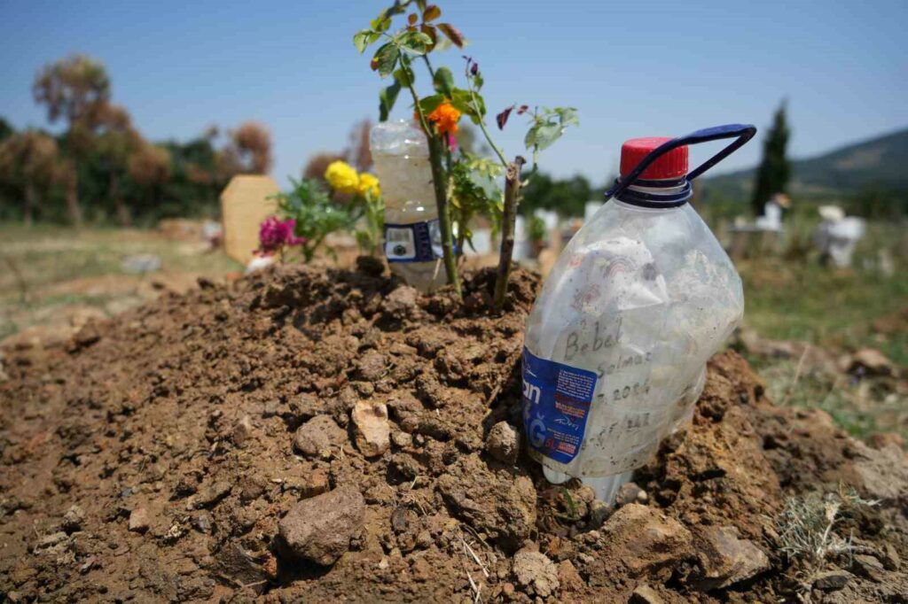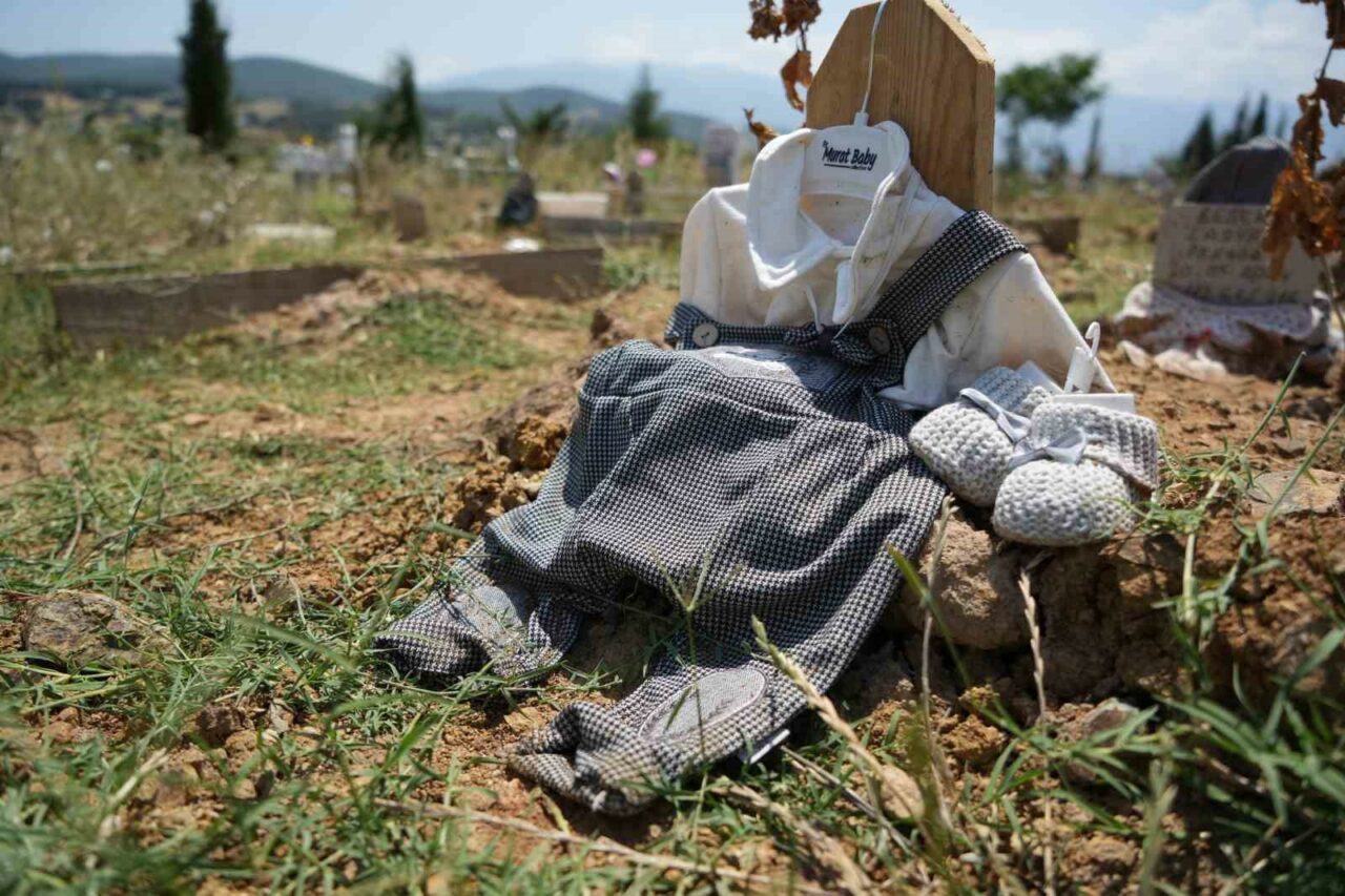 Solmaz bebeğin cansız bedeni kılınan cenaze namazının ardından Erdoğanköy Kent Mezarlığı’nda gözyaşları içerisinde toprağa verildi. Solmaz ailesi bebeklerin mezarına doğduktan hemen sonra giydirdikleri beresi ile emziğini mezarının başına koydu.