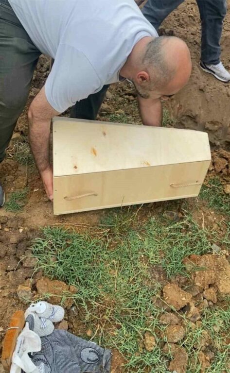 Bebeğe aldıkları kıyafetleri giydiremeden kaybettiğini belirten baba, “2 oğlum ve 1 kızım var. Hiçbirinin sağlık sorunu yok. Mezarlığa geldiğimizde oğlumu kaldırmakta güçlük çektim. Kendimizi çok hazırlamıştık, kıyafetlerini bile giydirmek nasip olmadı. Annesi ilk haberi aldıktan sonra ameliyatının zedelendiği söylendi. Şu anda evde istirahat halinde, onu da yalnız bırakmak istemiyorum. Ablası, kardeşi hepimiz çok üzgünüz. Ailece yıkıldık. Bebeğe aldığımız kıyafetlerin hiçbirini giydiremedik. Umarım onlar bir başkasına nasip olur. Biz onları severek almıştık” dedi.