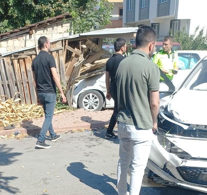 Demirel sokaktan çıkan Sürücü Emre Y.(29) yönetimindeki 16 Y 0100 plakalı otomobil, Paşaören sokaktan çıkan Sürücü Muhammet Salih Ç.(26) yönetimindeki 60 AEA 135 plakalı otomobil çarpıştı. Çarpışmanın etkisiyle savrulan araçlardan 60 AEA 135 plakalı otomobil evin bahçesindeki depoya çarparak durabildi.