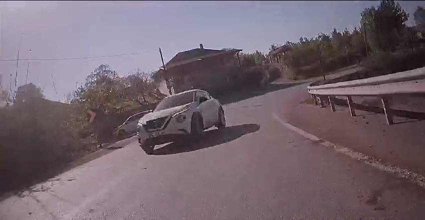 Motosikletiyle gezintiye çıkan Serdar D., karşıdan gelen aracın şeridine aniden girmesi üzerine direksiyonu kırarak ölümden döndü. Bu yaşanan olaydan yaklaşık 20 sonra yine aynı durumla karşılaşan sürücü, saniyeler içinde iki kez ölümden döndü.