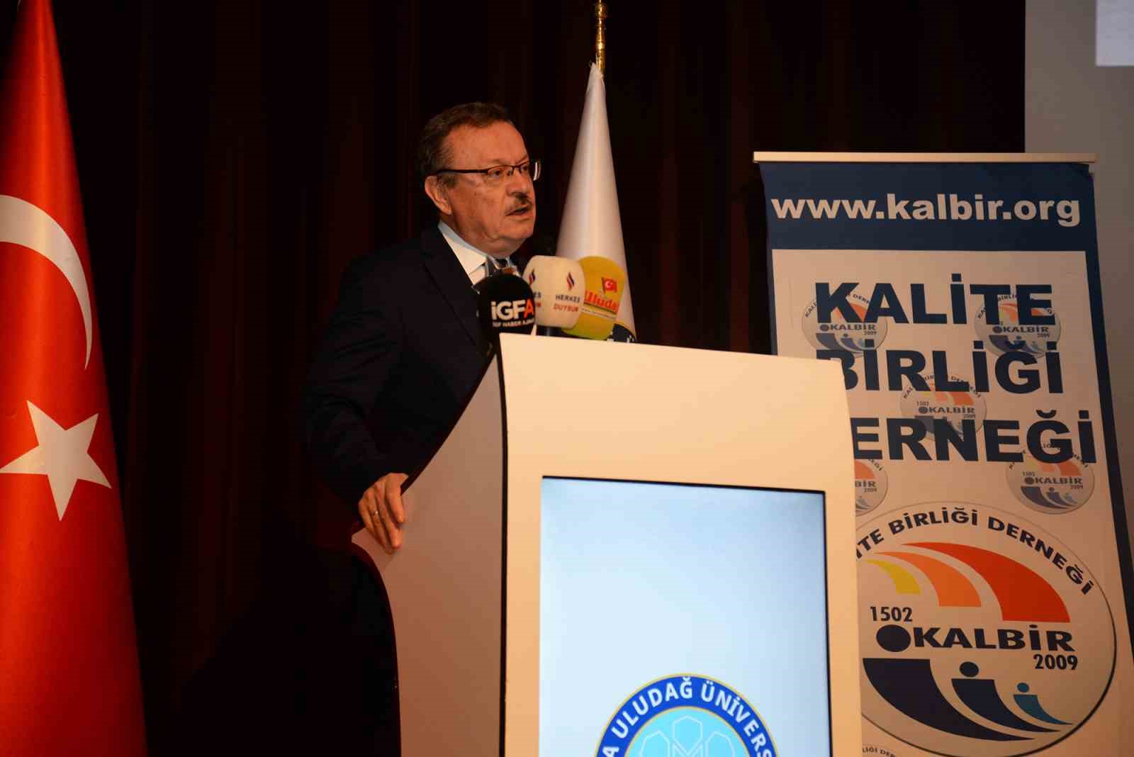 Törende konuşan Rektör Prof. Dr. Ferudun Yılmaz, kalitenin kavram olarak Türkiye’de yaklaşık 25-30 yıldır konuşulmaya başlandığına işaret etti. Kamu ve özel sektörün öncülüğünde yürütülen kalite çalışmalarının zamanla kişisel anlamda da benimsendiğini söyleyen Prof. Dr. Ferudun Yılmaz; “Kalite kavramının kendisini gündelik konuşmalarımızda hep olumlu anlamda kullanıyoruz. Ancak kurumsal yapıların niteliğini değerlendirirken, kalite kelimesini topyekûn iyileştirme yönünde ele alıyoruz. Bursa Uludağ Üniversitesi olarak kurulduğumuz ilk günden itibaren kalite konusunda çeşitli girişimlerimiz oldu. Ancak bu anlamda üniversitemizin kalite çalışmalarını merkezine alması, önceki Rektörümüz Prof. Dr. Ahmet Saim Kılavuz hocamız döneminde olmuştur. Kalite Koordinatörlüğümüz, son yıllarda üniversitemiz için son derece kıymetli gelişimlere vesile olmuştur. Önceki yıl da öğrencilerimiz tarafından Kalite Topluluğu kuruldu. Araştırma üniversiteleri arasında yer alıyoruz. Bu üniversiteler arasında daha üst sıralara gelmek istiyoruz. En önemli başlıklarımızdan birisi de kalitedir. Yapılan çalışmalar, projeler ve etkinlikler sayesinde ciddi bir ivmelenme yakaladık. Bu anlamda Prof. Dr. Ahmet Saim Kılavuz hocamıza çok teşekkür ediyoruz. Bizlere değerli katkılarda bulunmuştur. Aldığı ödülü de son derece hak ettiğini düşünüyoruz. Programa emeği geçen herkese teşekkür ediyor, ödül alan kıymetli insanları da tebrik ediyoruz” dedi.