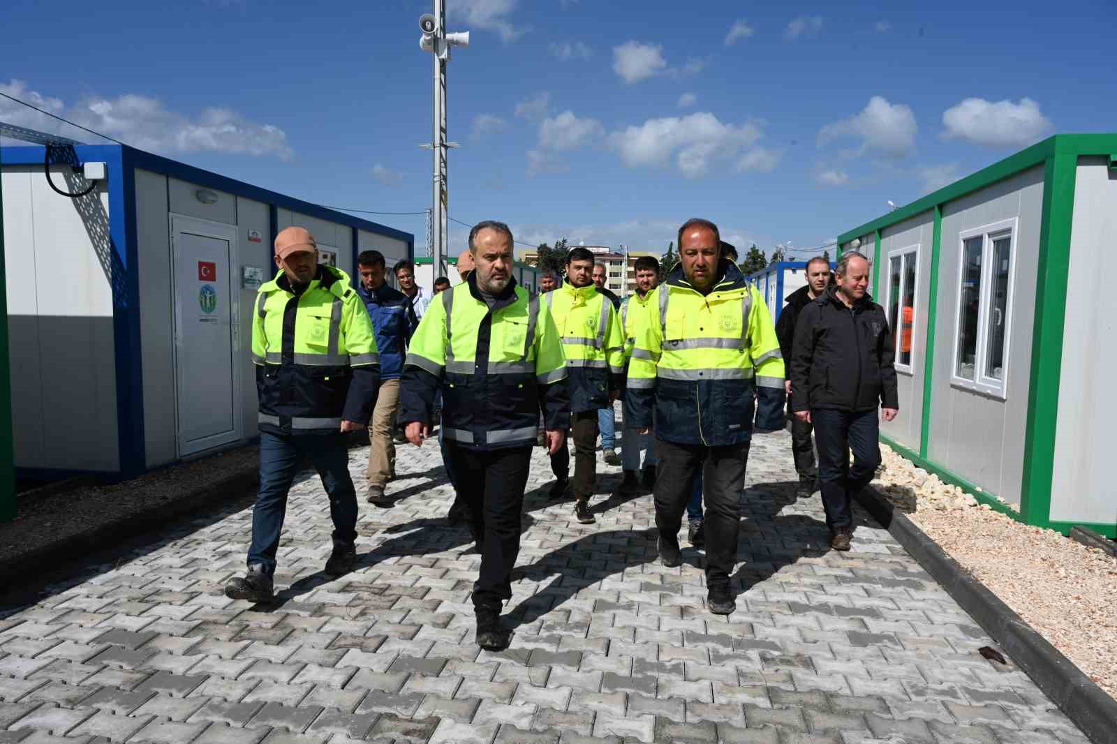 Ulaşımdan altyapıya, çevreden tarihi kültürel mirasa kadar pek çok yatırım planıyla 2023 yılına giren Bursa Büyükşehir Belediyesi, 6 Şubat’ta yaşanan 11 ilde büyük yıkımlara yol açan depremlerin ardından tüm enerjisiyle yaraları sarmak için büyük seferberlik başlattı. Depremin ilk haftasında Gaziantep’in Nurdağı ve İslahiye ilçelerinde aşevleri kuran ve bölgede yardım ulaştırmak için ayak basmadık yer bırakmayan Büyükşehir Belediyesi, depremin ikinci haftasından itibaren Hatay’a odaklandı. Burada yardımların dağıtımı, konteyner kentlerle yaşam alanları oluşturulması ve seyyar tuvalet kurulumu görevlerini üstlenen Büyükşehir Belediyesi, Hatay’da 3 ayrı bölgede 2000 konteynerden oluşan yaşam alanları oluşturdu. Arama kurtarma için itfaiye, altyapı onarımı için BUSKİ, sıcak yemek ve erzak dağıtımı için BURFAŞ, ekmek temini için BESAŞ, su temini için Jeotermal A.Ş, meyve temini için Tarım Peyzaj A.Ş başta olmak üzere Büyükşehir Belediyesi’nin tüm birim ve iştirakleri seferberliğe katıldı. Depremin ilk gününden itibaren dönüşümlü olarak afet bölgelerinde 2500’ü aşkın personel ve 700’e yakın araçla yaraları sarmak için yoğun bir mesai harcandı. Depremde tamamen yıkılan Hatay’ın sembol eserlerinden Antakya Ulu Camii’nin restorasyonunu da üstlenen Büyükşehir Belediyesi, buradaki çalışmalarını aralıksız sürdürüyor.