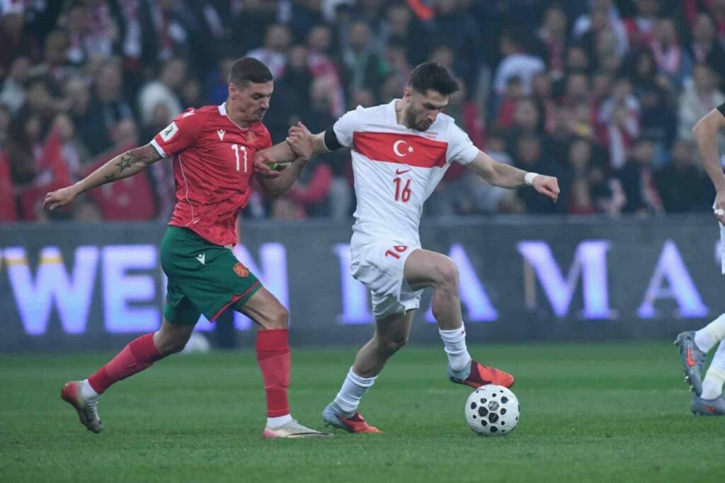 A Milli Futbol Takımı, 2026 Dünya Kupası Avrupa Elemeleri E Grubu 5. maçında Bursa’da Bulgaristan ile karşılaşıyor. Mücadelenin ilk yarısı ay-yıldızlı ekibin 1-0 üstünlüğü ile sona erdi.