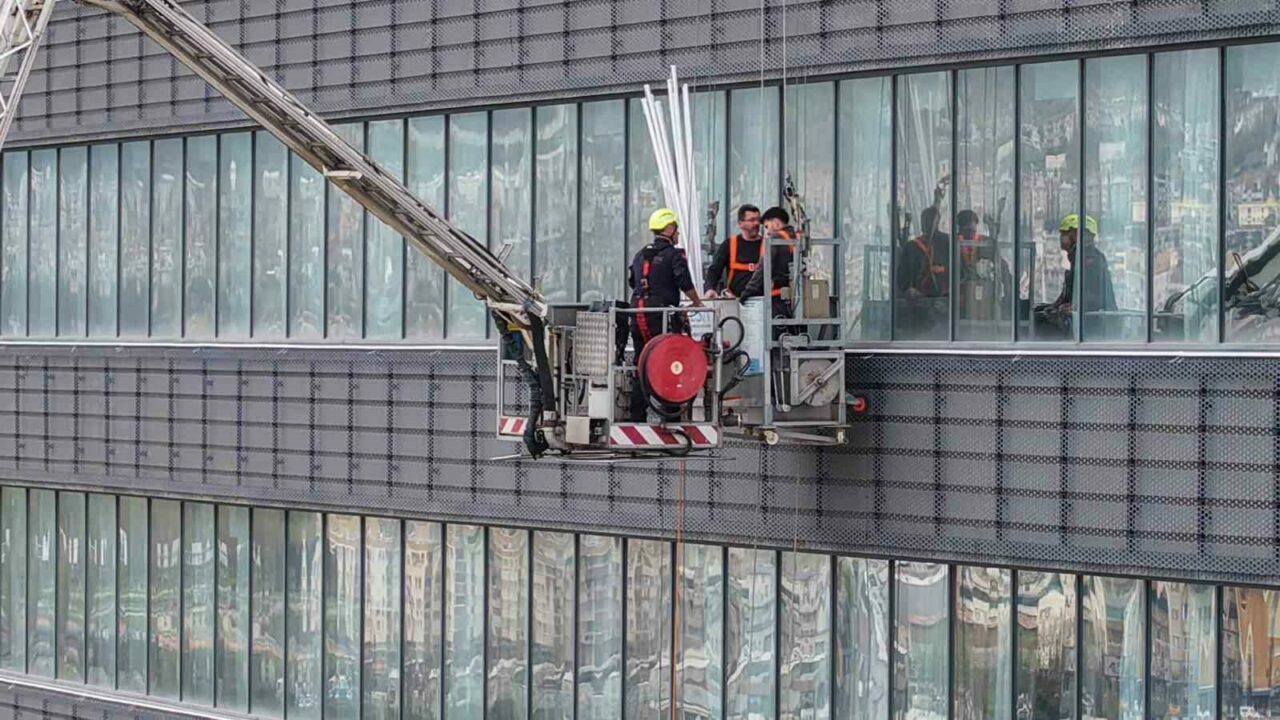 İtfaiye sepetiyle aşağıya indirilen işçilerin sağlık durumunun iyi olduğu belirtildi. Polis ekipleri olayla ilgili soruşturma başlattı. Yüzlerce kişi de kurtarma operasyonunu meraklı gözlerle izledi.