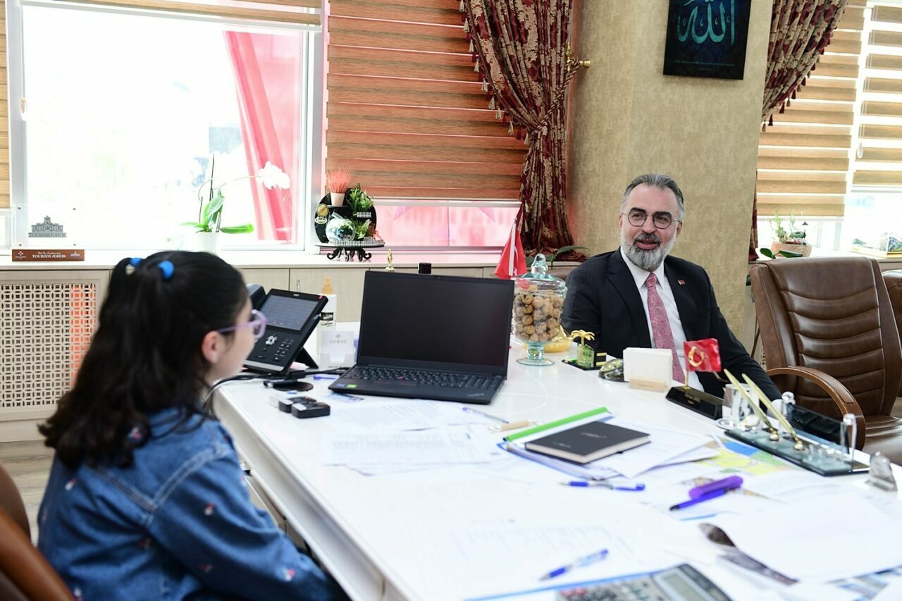 Programların ardından Başkan Ferhat Erol’u makamında ziyaret eden çocuklar, bayram coşkusunu bu kez belediye binasında yaşadı. Başkan Erol, minik misafirleriyle yakından ilgilenerek onların mutluluğuna ortak oldu. Ziyaret sırasında çocuklar, duygu ve düşüncelerini paylaşarak çeşitli istek ve taleplerini Başkan Erol’a iletti. Samimi bir ortamda gerçekleşen buluşmada, çocuklarla tek tek sohbet eden Başkan Erol, onların görüşlerini dikkatle dinledi.