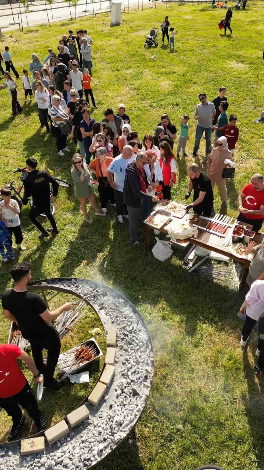 Bursa’nın fenomen ciğercisi Ali Koçak da çocukların coşkusuna ortak oldu. Ünlü işletmeci, bayram alanında kurduğu ay yıldızlı mangalda 1 ton kebap yaparak çocuklara ikram etti.