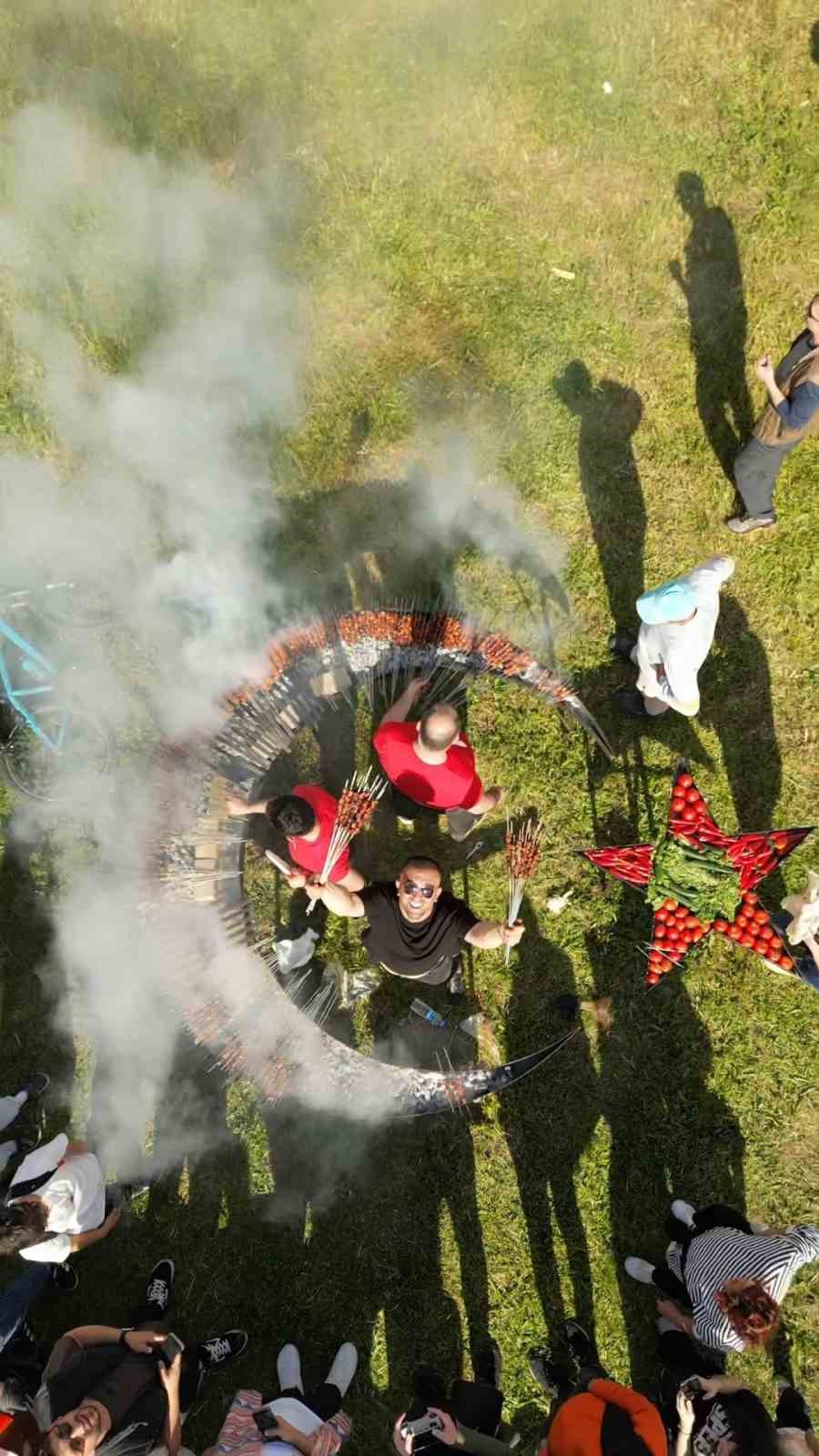 Bursa’da ciğerci Ali Koçak, 23 Nisan Ulusal Egemenlik ve Çocuk Bayramı’nda ay yıldızlı mangalda 1 ton kebabı çocuklara ikram etti.
