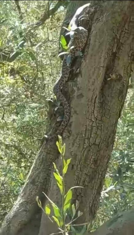 Bursa’nın İznik ilçesinde zeytin ağacının üstünde görülen 2,5 metre uzunluğundaki yılan cep telefonu kamerasına yansıdı.