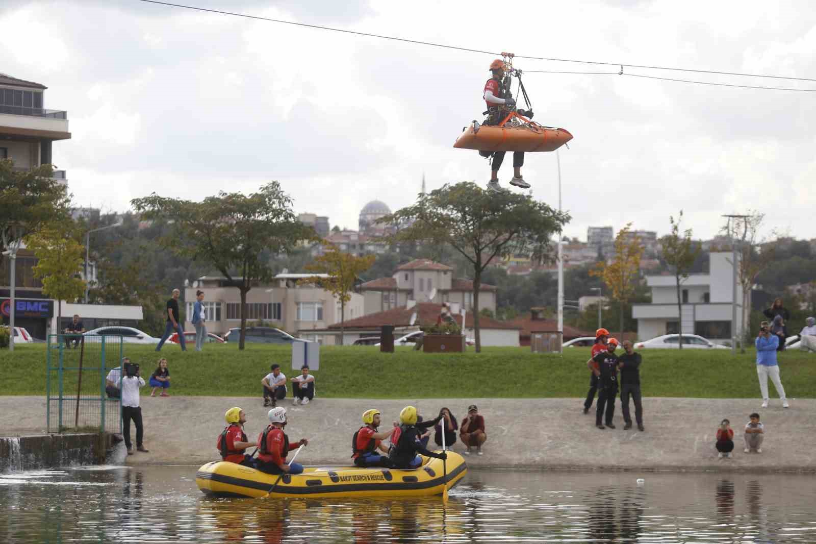 Arama-kurtarma çalışmalarıyla deprem, sel ve doğal afetlerde birçok kişinin hayatını kurtaran sivil toplum kuruluşlarından Bursa Arama Kurtarma Derneği (BAKUT), kuruluşunun 25. yılını Hüdavendigar Kent Parkı’nda kutladı. İstiklal Marşı’nın başlamasıyla halat yardımıyla Hüdavendigar Kent Parkı’nın köprüsü üstüne çıkan ekipler, dev Türk bayrağını açtı. Senaryo gereği köprü ayağında bulunan yaralıyı sedye ile bota alan BAKUT ekipleri, dereden geçerek yaralıyı halat yardımıyla kurtardı. 7’den 70’e herkesin keyifle izlediği gösterilerin ardından, etkinlikler fotoğraf sergisi, ekipman tanıtımı ve yüz boyama ile devam etti.