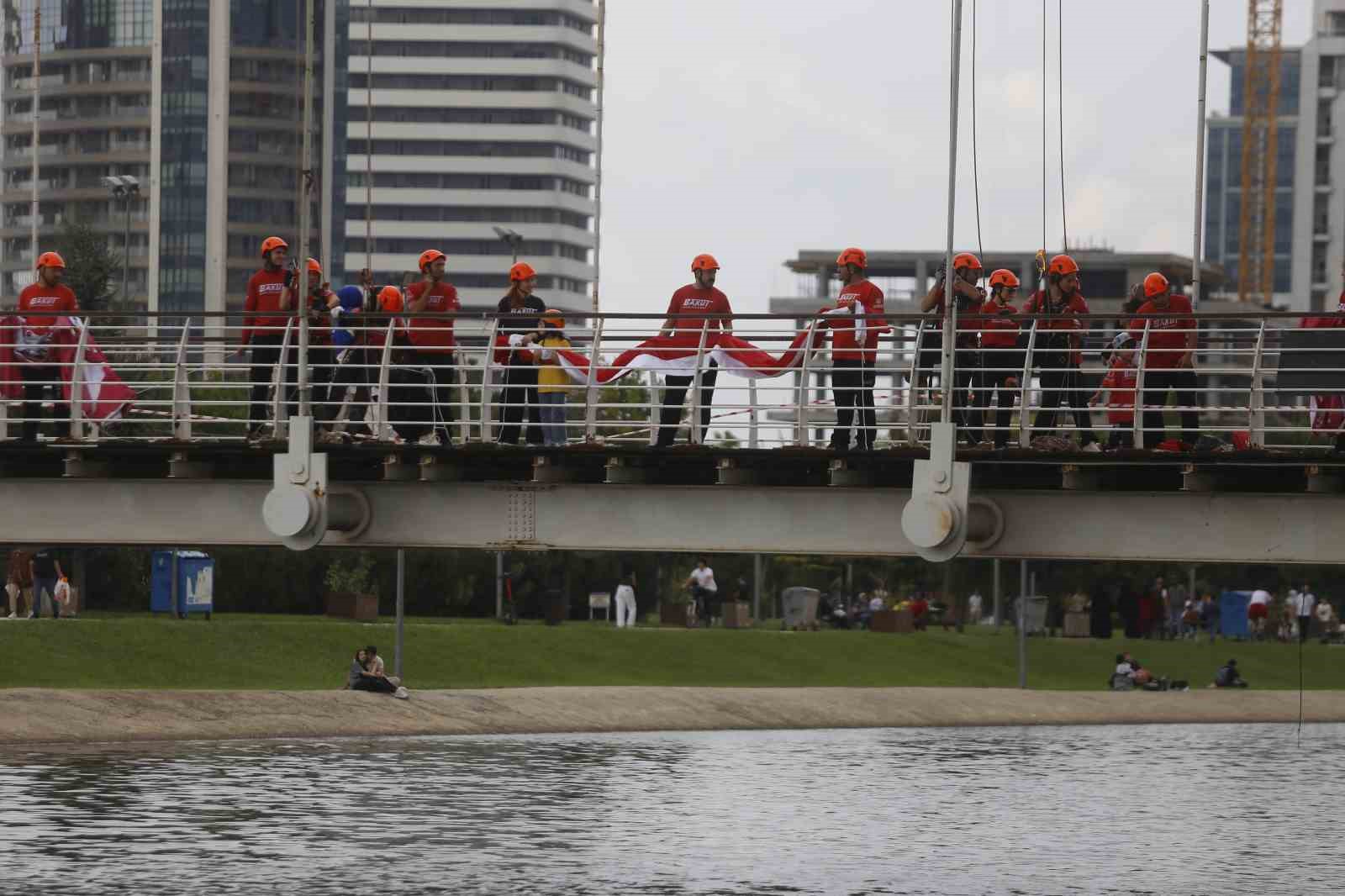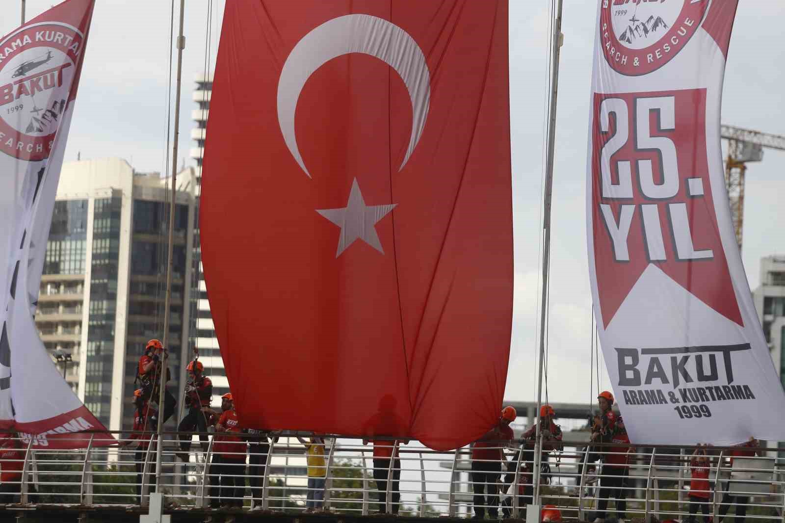 Bursa Arama Kurtarma Derneği (BAKUT) kuruluşunun 25. yılını köprü üzerinde Türk bayrağı açarak kutladı.