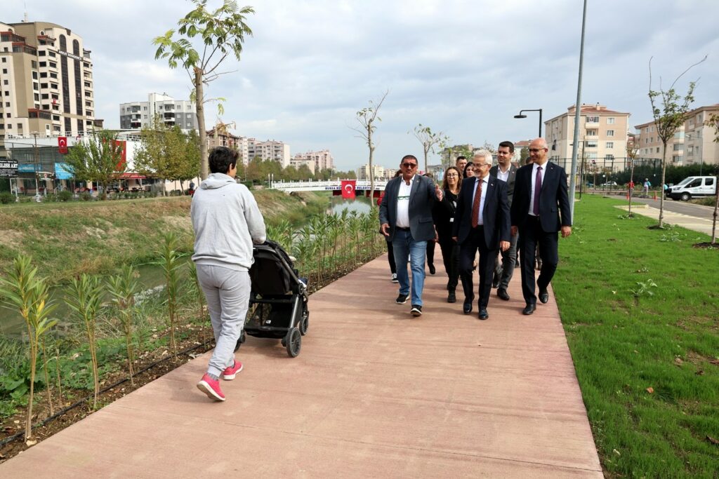 Projenin ikinci etabı hakkında da bilgiler veren Başkan Erdem, “İkinci etap çalışmaları çerçevesinde ise dere kenarında yer alan yeşil alanların tamamı düzenlenerek, toplam 2 kilometrelik bir koşu yolu yapıldı. Bu yol boyunca belirli noktalarda 70 adet cep otoparkı, dinlenme alanları, hamak alanı, bisiklet park alanı, fitness aletlerinin yer aldığı egzersiz alanı ve çocuk oyun alanı yapıldı. Bölgedeki peyzaj çalışması çerçevesinde ise, 3 adet biyoçeşitlilik bahçesi oluşturuldu ve alanda toplam 25 bin adet çeşitli türlerde bitki ile 350 adet ağaç dikimi yapıldı. Burası Nilüfer için kendiliğinden oluşmuş doğal bir ekolojik koridor. Ama biz kentimizde uygun alanlarda ekolojik koridorlar yaparak hizmete sunmaya devam edeceğiz” şeklinde konuştu.