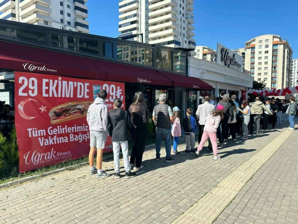 Bursa’da bir işletme, 29 Ekim Cumhuriyet Bayramı dolayısıyla gelirini Mehmetçik Vakfına bağışlamak üzere tavuk döner ve ayranı 29 liradan sattı.