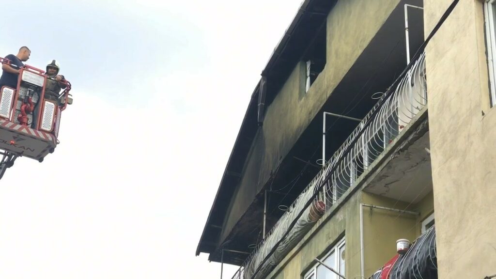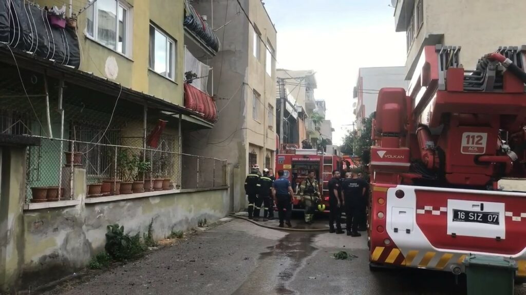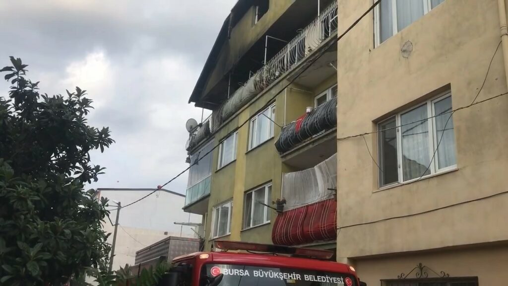 Bursa’da 3 katlı binanın en üst katında başlayan yangın bir anda büyüdü. Evde bulunan 2 kişi yangından etkilendi.