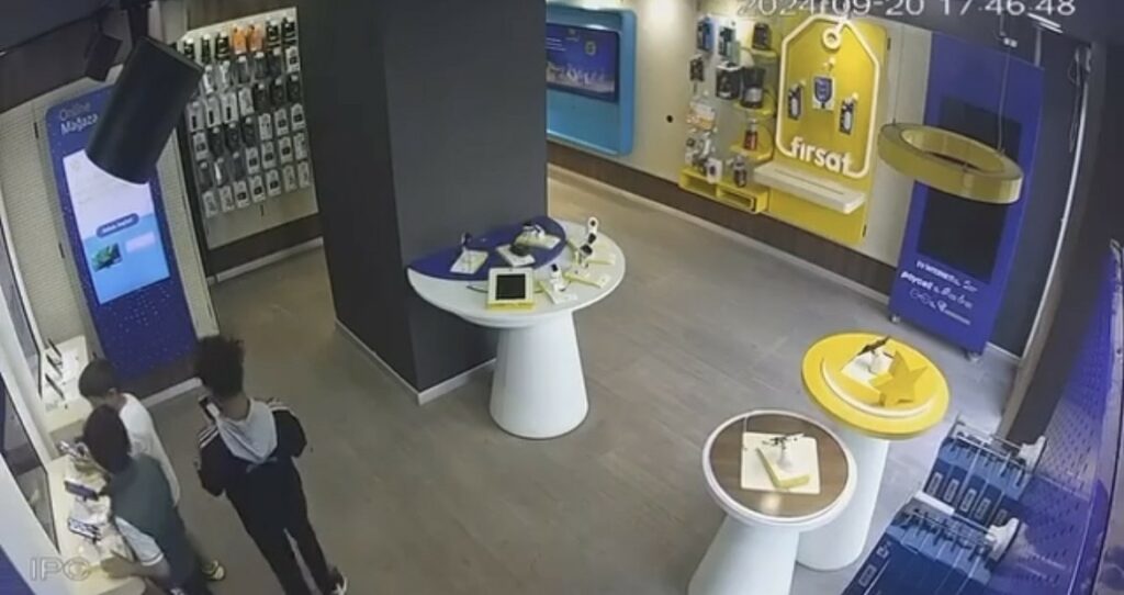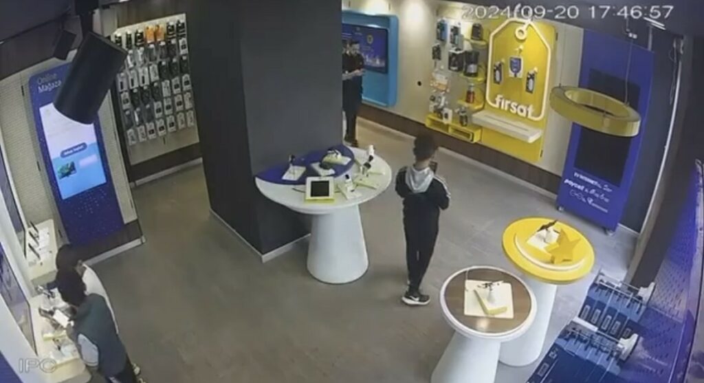 Osmangazi ilçesinde bulunan bir telefon mağazasına saat 17.30 sıralarında gelen 3 çocuk şüpheli, 2 telefonu 30 saniyede çalıp kayıplara karıştı. Şüpheli çocuklardan biri etrafta gözcülük yaptığı, 2 şüphelinin ise telefonu aldığı anlar güvenlik kamerasına anbean yansırken, 2 telefonun değerinin 160 bin lira olduğu öğrenildi. Polis ekipleri ihbar üzerine hırsızlığa karışan çocukları bulmak için çalışma başlattı.