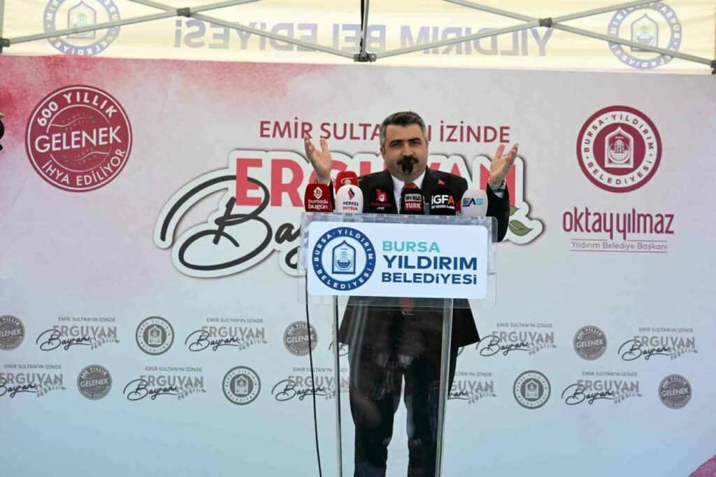 Erguvan Bayramı’nın Bursa’nın en önemli manevi zenginliklerinden olduğunu hatırlatan Yıldırım Belediye Başkanı Oktay Yılmaz, “Bizler için erguvan sadece baharın müjdeleyicisi değil. Erguvan her şeyden önce tevazu ve hikmetin günüdür. Birliğimizin beraberliğimizin, bereketin, kardeşliğin nişanesidir. Erguvan; bu şehrin duayla, irfanla ve çiçekle inşa edildiğinin göstergesidir. Biz bırakılan bu mirası yaşatarak, birlik beraberlik, kardeşlik hasletlerimizi perçinlediğimiz Erguvan Bayramı’ndan, onun oluşturduğu manevi iklimden güç alıyoruz. Erguvan’ın ‘Erguvan gibi olun; göze değil, kalbe dokunun’ şiarıyla yeşiliyle, tarihi ve kültürel değerleriyle gelişen şehrimizin geçmişinden güç alarak onu geleceğe taşıyoruz” dedi.