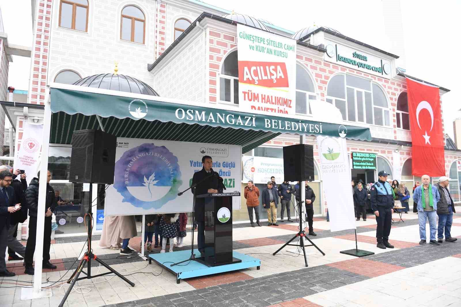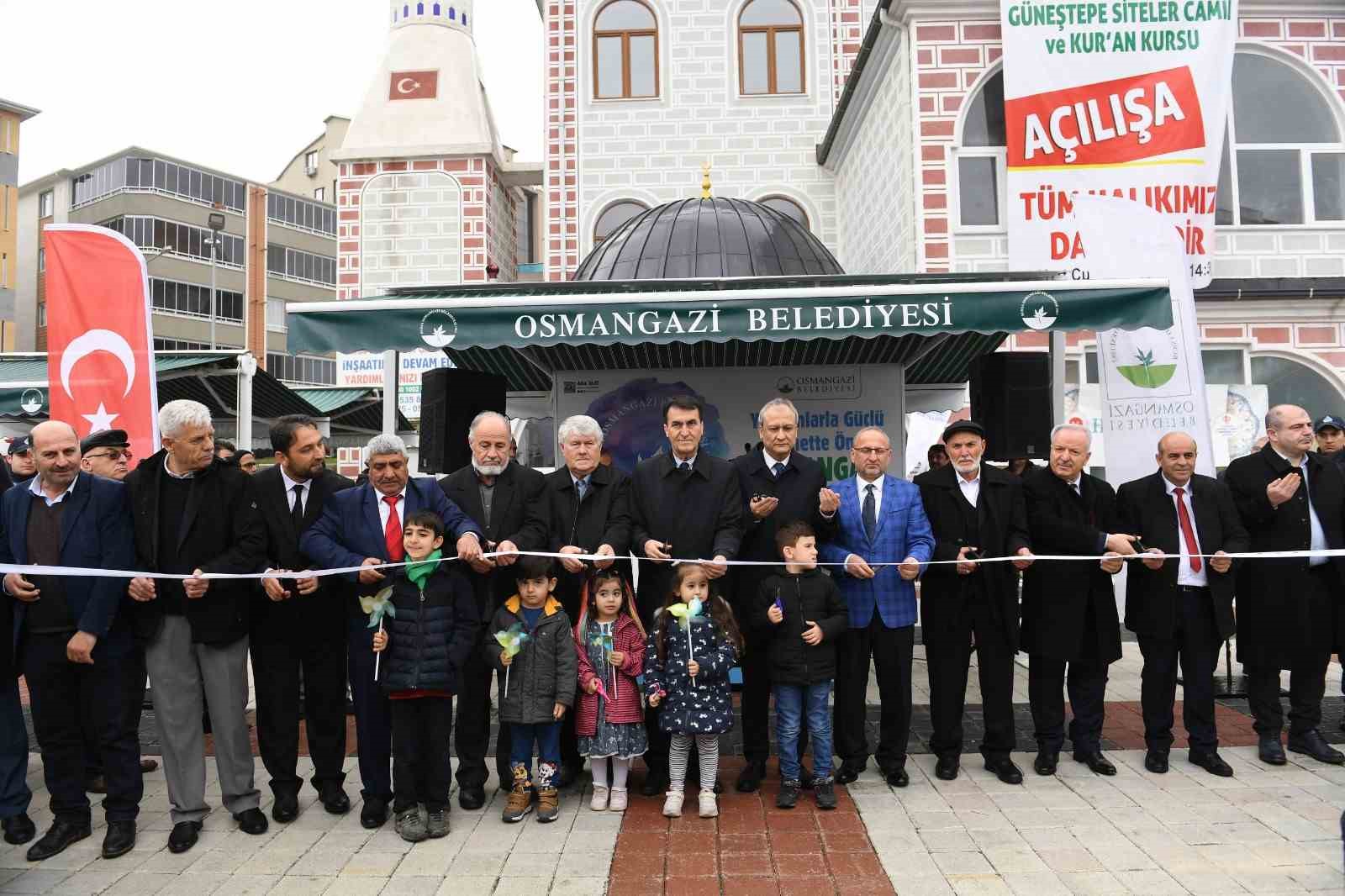 Osmangazi Belediyesi’nin çevre düzenlemesini yaparak inşaatına destek verdiği Güneştepe Mahallesi’ndeki Siteler İsmail Çolpan Cami ve Kuran Kursu, düzenlenen törenle hizmete açıldı. İlçenin modern gelişim bölgelerinden biri olan Güneştepe Mahallesi’ndeki cami çevresi, 6 bin 500 metrekare alanı ile mahalle sakinlerinin buluşma noktası haline geldi.
