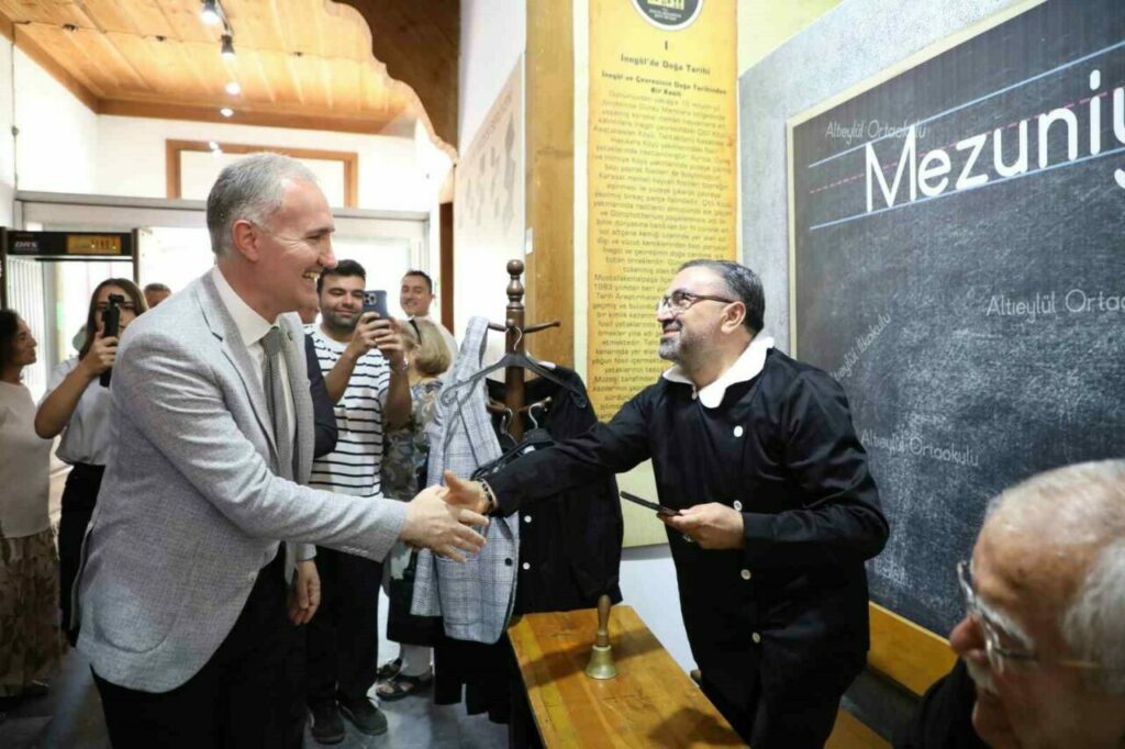 Sergi açılışında kısa bir selamlama konuşması yapan İnegöl Milli Eğitim Müdürü Halil İbrahim Zengin, “Bugün Altıeylül okulumuzun açılışının 70’inci yıl dönümü. Burada yıllar sonra birbirlerini gören dostlar, arkadaşlar hep birlikte bugünün heyecanını yaşıyorlar. Pazartesi günü itibariyle de 2025-26 eğitim öğretim yılını açtık. Bugün de yeni eğitim öğretim yılımızın ilk haftasını Altıeylül Okulu sergisiyle taçlandırmış oluyoruz. Belki bugüne kadar hatıralar dimağlardaydı, bugün karşılıklı birbirinizi görerek canlanmış oldu. Bu hatıraları tekrar canlandıran Belediye Başkanımız Alper Taban’a, Kent Müzesi çalışanlarına, Altıeylül Okulumuzun Müdürü Mehmet Akif Bey’e ve katılan herkese teşekkür ediyorum” dedi.