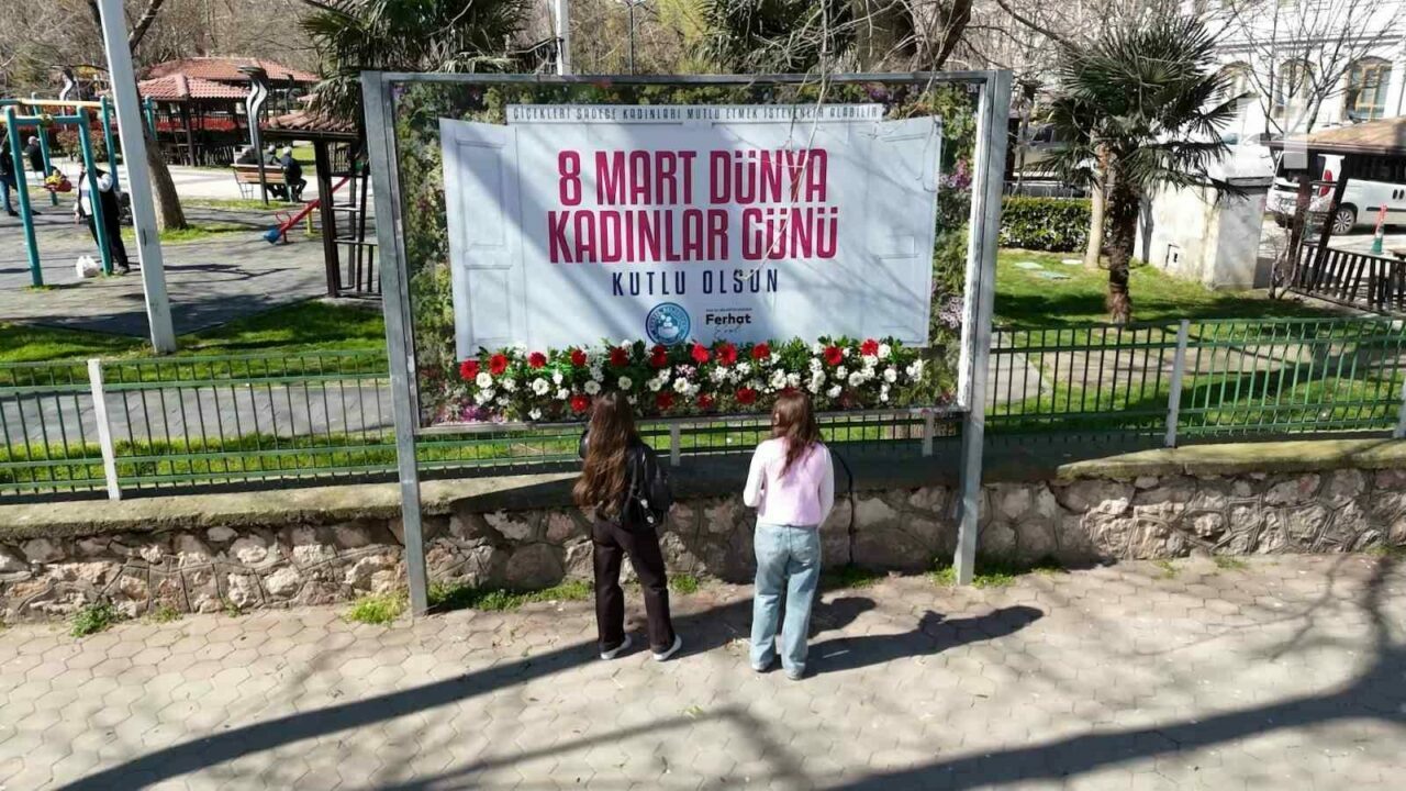 8 Mart’ta Kestel çiçek açtı…Kadınlar için bilboardların altına çiçek bırakıldı