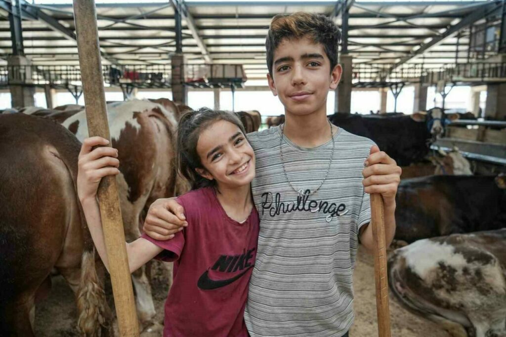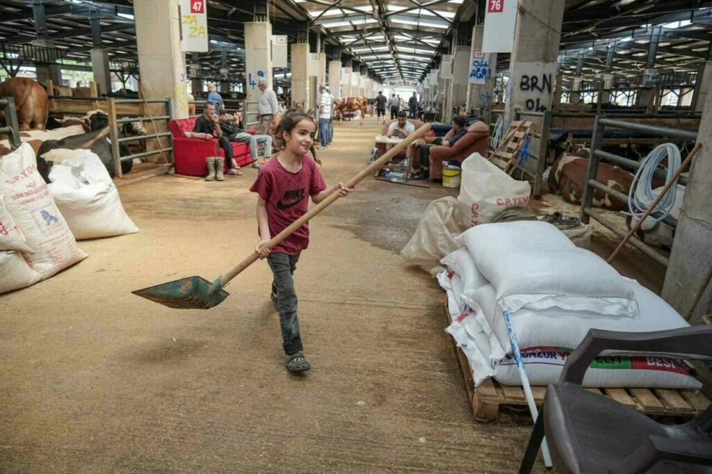 Kurban Bayramı’na sayılı günler kala hayvan pazarları hareketlendi. Muş’tan Bursa Hayvan Pazarı’na kurbanlık satmak için gelen Özmen ailesinin iki küçük ferdi, pazarda gösterdikleri özveriyle dikkat çekiyor.