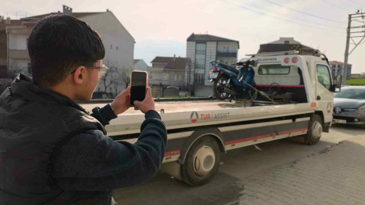Öte yandan motosikleti çekiciye yüklenirken sürücünün cep telefonu ile fotoğraf çekmesi dikkat çekti. Ceza sonrası konuşan sürücü, “İşe gidiyordum yakalandım. Abartı egzozlu gezmeyin yakalarlar. Devlet yakaladı bizi” dedi.