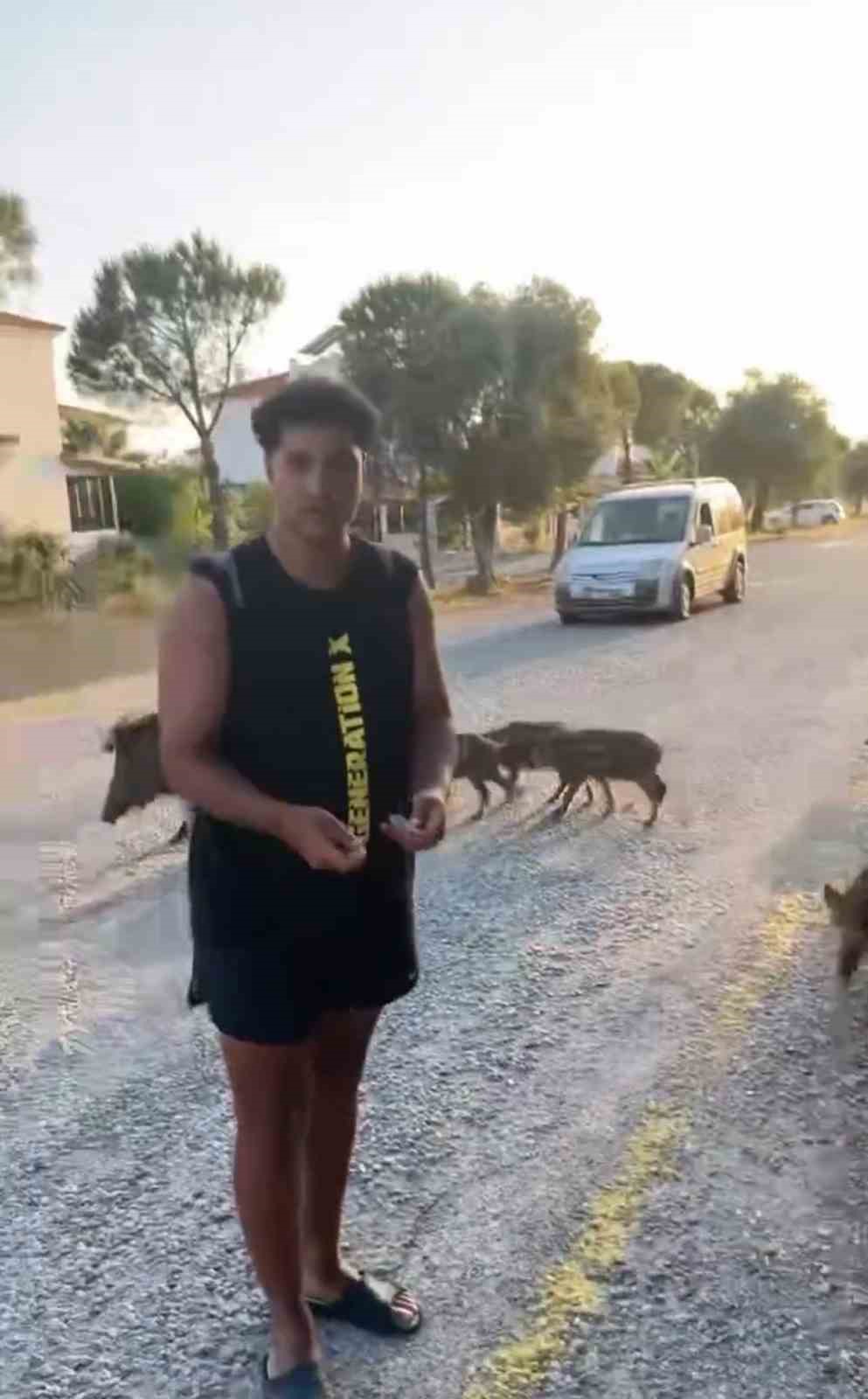Mudanya ilçesinde aç kalan domuz sürüsü soluğu ilçe merkezinde aldı. Tek tek sokaklara giren domuz sürüsü, çöpleri karıştırarak yemek aradı. Domuzların zararsız olduğunu gören vatandaş ise domuzları kurabiye ile besledi. Bir süre daha gezen domuzlar daha sonra geldikleri zeytinlik alana giderek gözden kayboldu.