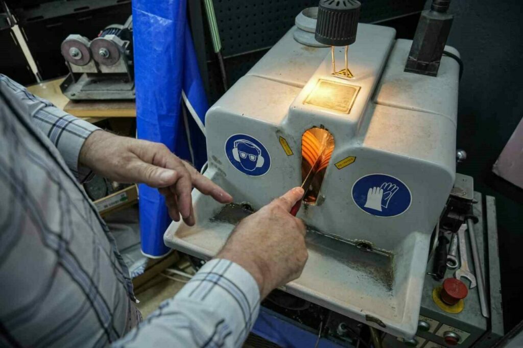 Kasaplar için çeliği daha yoğun ve sıkı olan kurban bıçağı ürettiklerini kaydeden Bıçak ustası Mehmet Pirge, “Kurban Bayramı bir bıçak algısını oluşturduğu zamandır yani insanlar evlerindeki sebze bıçaklarını bile Kurban Bayramı’na getirip biletiyorlar. Her zaman bileme hizmetimiz olduğu halde bıçak algısının en yoğun olduğu zaman Kurban Bayramı zamanıdır. Biz bileme hizmeti veriyoruz ama bizim esas işimiz bıçak satmak. Bizim kendi markamızla kurban bıçağı için farklı, mutfak bıçağı için farklı, döner bıçağı için farklı çelik kullanıyoruz. Yani her işin kendisine özgü ihtiyaçlarını karşılayacak çelikleri kullanıyoruz. Kurban bıçağının en önemli özelliği sıkı olması. Yani çelik yoğunluğu sıkı, aşınma katsayısı yüksek olması lazım. Şu anda piyasada kullanılan bizim de bazı çeşitlerimize uygun fiyatlı olan çeşitlerimizde kullandığımız çelikte yıpranma katsayısı 40. Bizim kurban bıçağı için kullandığımız çeliklerde yıpratma katsayısı 500. Bunu herhangi bir bıçakçıya sorsan bilmez. Dünyada üç tane olan, laboratuvarın bir tanesi bizde. Biz çeliğin röntgenini de çekebiliyoruz. Her türlü aşamasını da tokluğunu da tespit edebiliyoruz” şeklinde konuştu.