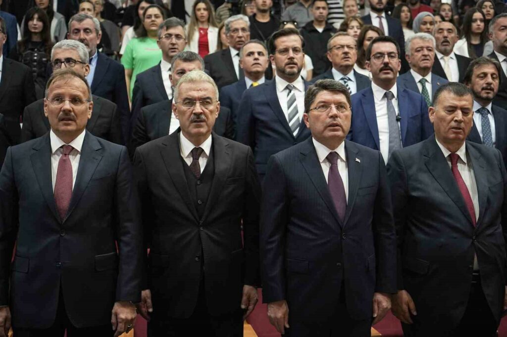 Toplumun geliştiğini, ihtiyaçların çeşitlendiğini, bilişim teknolojilerinin de gelişmesiyle yeni yeni suç tiplerinin ortaya çıktığına dikkat çeken Bakan Tunç, “Sosyal medyanın görünürlüğün artması nedeniyle suçlardaki artış tüm bunlar tabi ki yeni ihtiyaçları da doğuruyor. Bu yeni ihtiyaçları da süratli bir şekilde gerçekleştirmek, ihtiyaçlara uygun mevzuat düzenlemelerini yapmak gerekiyor. Özellikle son günlerde tartışılan, işte cezasızlık algısına yönelik eleştiriler. Bu eleştirileri elbette ki dikkate alıyoruz. Bir buçuk yıldan bu yana yargı reformu strateji belgesiyle ilgili bir hazırlığımız var. Önümüzdeki birkaç hafta sonra Cumhurbaşkanı Recep Tayyip Erdoğan, kamuoyuyla paylaşacak. Özellikle suç ve suçluyla mücadelede bir kere suçun önlenmesinden tutun da soruşturma aşaması, dava aşaması ve infaz aşamasının her biri birbirinden değerli. Bu anlamda caydırıcılığı sağlamak, özellikle suç işlemesini önlemek, suç işleyenlerin cezalarını çektikten sonra onların topluma kazandırılmasını sağlayabilmek için çok önemli çalışmalar bugüne kadar yaptık. Bundan sonra da özellikle gelişen durumlar nedeniyle yapmak durumundayız. Yargı reformu strateji belgemizde özellikle eleştiri konusu olan denetimli serbestlikle ilgili uygulamalarla ilgili, koşullu salıvermeyle ilgili ve bazı suçlar, özellikle öne çıkan, toplumun huzur ve sükunetini bozmaya yönelik davranışlara yönelik cezaların, alt sınırların arttırılmasına yönelik tutuklama tedbirinin şekline gerek mevzuatımızda gerekli uygulamaya yönelik önemli çalışmalarımız var. Bu taslak çalışmalarımızı milletvekillerimizin takdirlerine sunacağız ve bu anlamda suç şebekeleriyle mücadeleyi emniyet güçlerimizle de yargı teşkilatımızla beraber bu mücadelemizi sürdüreceğiz. Toplumun huzurunu bozan suç şebekelerine, örgütlerine hiçbir zaman taviz vermeyeceğiz. Özgürlüklerin alanını alabildiğine genişlettik dedik. Tabii bunu yaparken hem mevzuatımızdaki değişiklikler hem de anayasal düzenlemeler yaptık. Anayasamızda kadın haklarıyla ilgili, çocukların korunmasıyla ilgili. Hak arama yollarının genişletilmesiyle ilgili önemli reformları hayata geçirdik. Kamu Denetçiliği’nin kurulması, bilgi edinme hakkı, bireysel başvuru hakkı gibi birçok düzenlemeyi hayata geçirdik. Özel hayatın korunması, kişisel verilerin korunması. Bunlar anayasamızda olmayan şeylerdir. Darbe anayasasında bunlar yoktu. Ama bunlar ihtiyaçtı ve bu mekanizmaların kurulması gerekiyordu ve bunlar önümüzdeki işte 2010, 2004, 2005 ve 2017 anayasa değişiklikleriyle bir kısmı referandumla, bir kısmı mecliste oy birliğiyle yapılan düzenlemeler olarak hayata geçti. Tabii ülkemizin yüksek standartlı bir demokrasiye kavuşması önemliydi. Çok önemli düzenlemeleri hayata geçirdik. İşte Milli Güvenlik Kurulunun yapısı, Yüksek Askeri Şura’nın yapısı, Hakimler ve Savcılar Kurulu, Anayasa Mahkemesi, demokratik hukuk devleti ilkelerine daha uygun hale getirilebilmesi için önemli çalışmalar yapıldı. Tabii bundan sonra yapılamaz mı? Özellikle o kurum ve kuruluşların bundan sonra bu ülkede bir daha milli iradenin, demokrasinin önü kesilmesin diye vesayetçi ruhtan tamamen arındırılabilmesiyle ilgili olarak yapılabilecekler elbette ki var. Anayasamızda yapılan bunca değişiklik darbecilerin yargılanabilmesinden tutun da sıkıyönetimin ilan edilebilmeyeceğine yönelik hükümlerin kaldırılmasına yönelik sıkıyönetimin ilan edilebileceğine yönelik hükümlerin kaldırılmasından tutun da birçok demokratik düzenlemeleri anayasamızda hayata geçirdik. Ama biz şimdi diyoruz ki Cumhuriyetimizin ikinci yüzyılına başladık. Türkiye Yüzyılı diyoruz inşallah. Gençlerimiz burada, onların omuzlarında Türkiye Yüzyılı inşa edilecek. Bizler özellikle ön sıradakiler temeli attı. Şimdi asıl inşaat sürecini bu gençlerimiz yapacak. O nedenle gençlerimize biz güveniyoruz” diye konuştu.