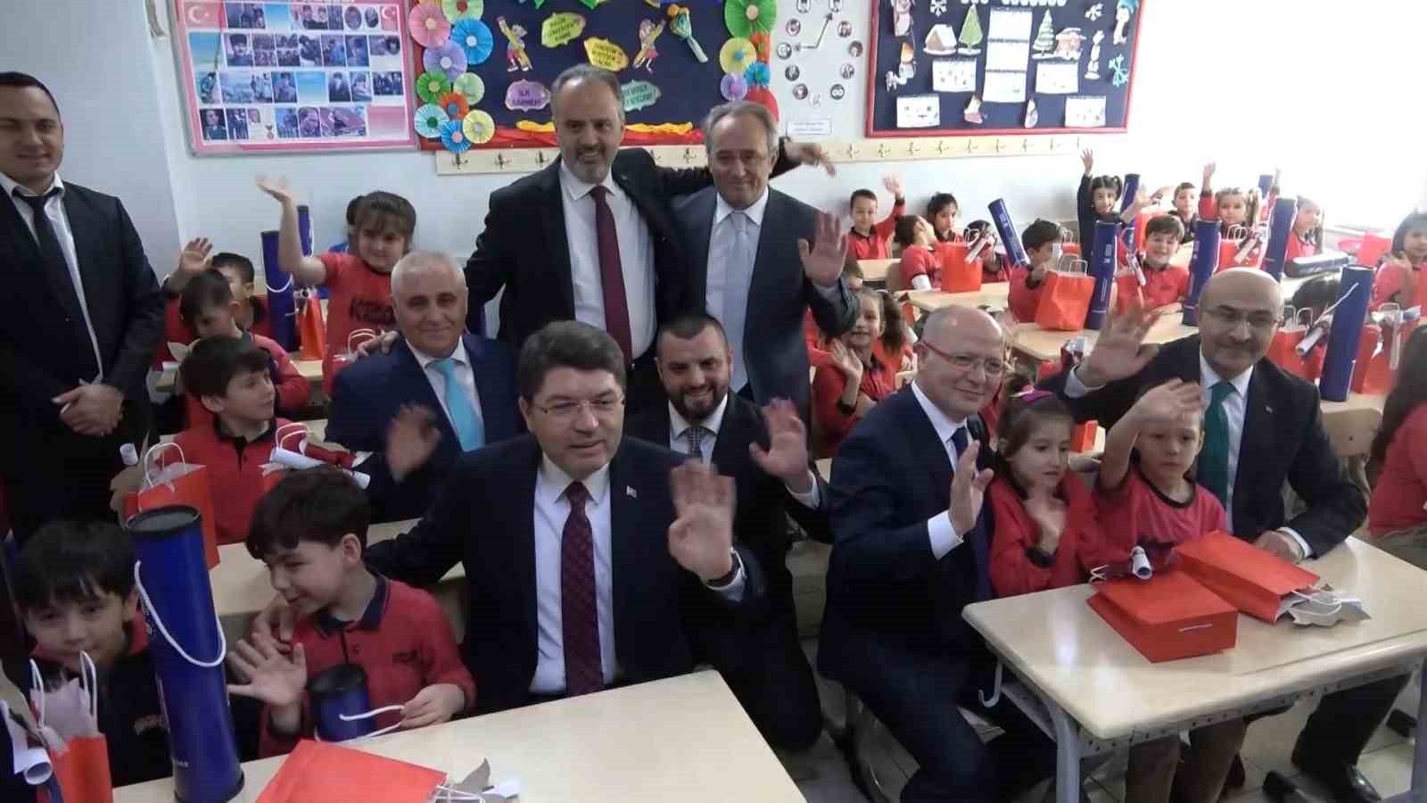 Adalet Bakanı Yılmaz Tunç, Bursa’da bir okulda öğrencilere karne ve hediyelerini dağıttı.