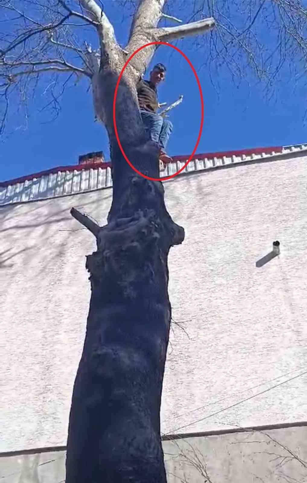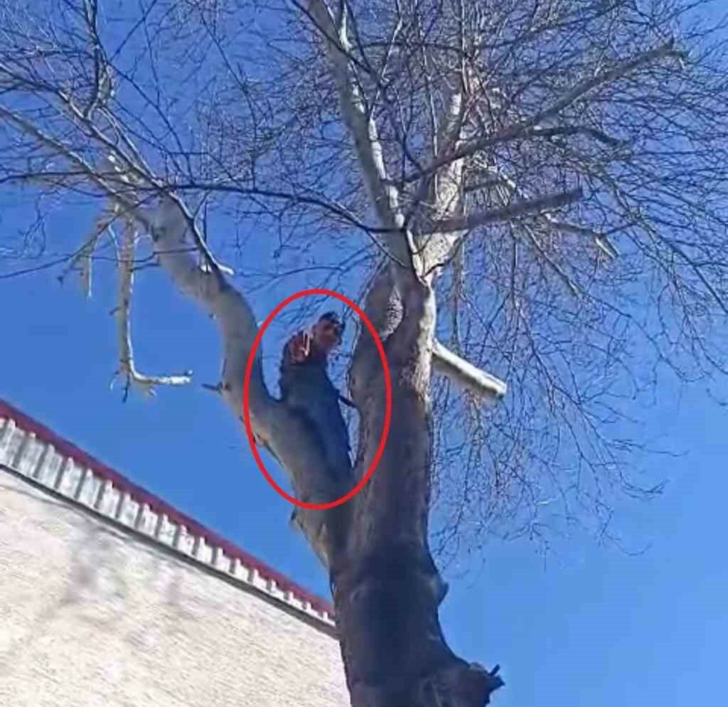 Şüphelilerden biri yakalanacağını anlayınca kedi gibi dümdüz ağaca tırmanıp polise el salladı