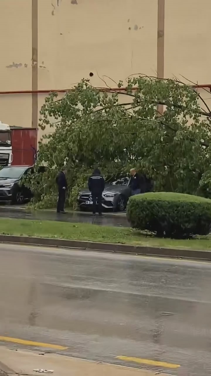 Bursa’da şiddetli yağış hayatı olumsuz etkiledi. Bazı bölgelerde kısa süreli fırtınaya dayanamayan ağaçlar gövdesinden kırılırken, Nilüfer ilçesinde ise devrilen ağaç lüks otomobilin üzerine devrildi. Şans eseri olayda yaralanan olmazken, Osmangazi ilçesine bağlı Hamitler Mahallesi’nde ise sıralı ağaçların üzerine yıldırım düştü. Devrilen ağaçların bulunduğu bölgede vatandaşların olmaması ise facianın önüne geçti.