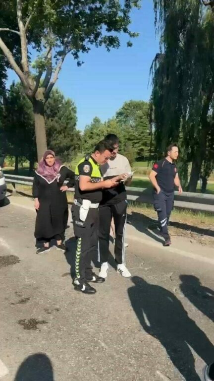 Bursa’da ailesiyle birlikte sınav için yola çıkan genç, kaza yapınca imdadına polise ekipleri yetişti.