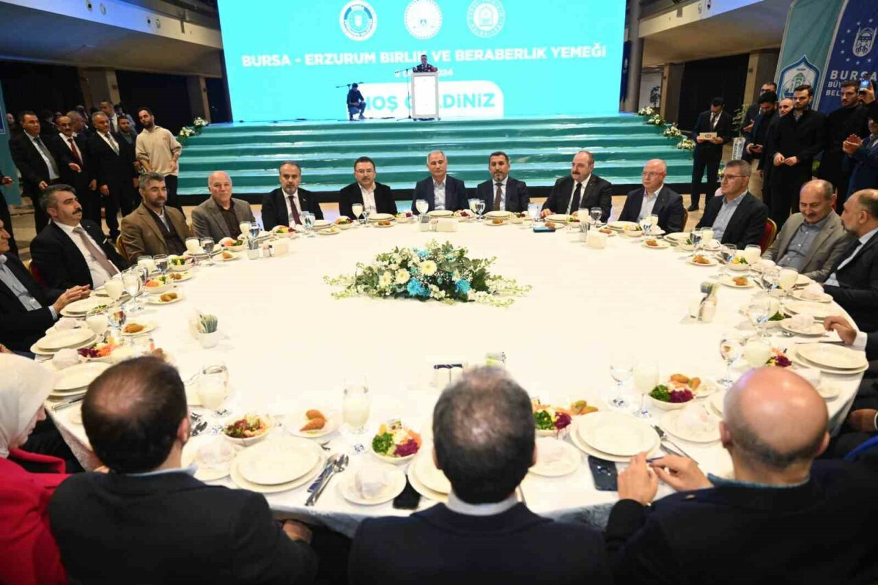 Bursa Erzurum Dernekleri Federasyonu (BEDFE) tarafından düzenlenen birlik ve beraberlik yemeği Merinos Atatürk Kongre ve Kültür Merkezi’nde gerçekleşti. Yemeğe AK Parti Genel Başkanvekili Efkan Ala, Bursa İl Emniyet Müdürü Sabit Akın Zaimoğlu, Bursa Büyükşehir Belediye Başkanı Alinur Aktaş, İlçe Belediye Başkanları, AK Parti Erzurum Milletvekili ve eski İçişleri Bakanı Selami Altınok, AK Parti Bursa Milletvekili ve eski Sanayi ve Teknoloji Bakanı Mustafa Varank, Erzurum Büyükşehir Belediye Başkanı Mehmet Sekmen, AK Parti Bursa Milletvekilleri, BEDFE Genel Başkanı Bünyamin Savaş Albayrak ve çok sayıda vatandaş katıldı.