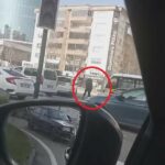 Bursa’da 2 şoför, trafikte tartışmaya başlayınca akan trafikte otomobillerinden inerek birbirine girdi.