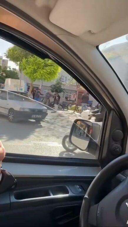 Olay, merkez Osmangazi ilçesi Fatih Mahallesi’nde meydana geldi. Edinilen bilgiye göre, aralarında daha önceden alacak-verecek meselesi yüzünden husumet bulunan 2 kişi yol üzerinde karşılaştı. Tartışma kısa sürede büyürken taraflar yanlarında çocuklarının olmasına aldırmadan kavgaya tutuştu. Kavga anı çevredekilerin araya girmesiyle son buldu. O anlar cep telefonu kamerasına yansıdı.