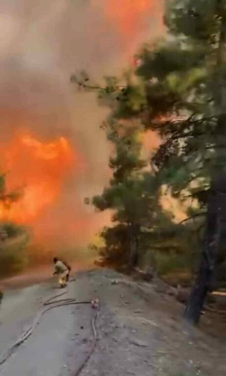 Bursa’nın Gürsu ilçesinde 4 gündür süren yangının ilk çıkış anına müdahale eden orman işçilerinin fedakarlıklarının görüntüleri ortaya çıktı. Dışkaya bölgesinde çam ağaçlarından yükselen metrelerce alevlere müdahale eden bir orman işçisi, üzerine gelen alevlere ve mesai arkadaşlarının defalarca “kaç kaç” diye bağırmasına rağmen son saniyeye kadar hortumu ve müdahaleyi bırakmadı. Takdire şayan bu hareket üzerine Orman Bölge Müdürlüğü yetkilileri mesai arkadaşlarına teşekkür etti.