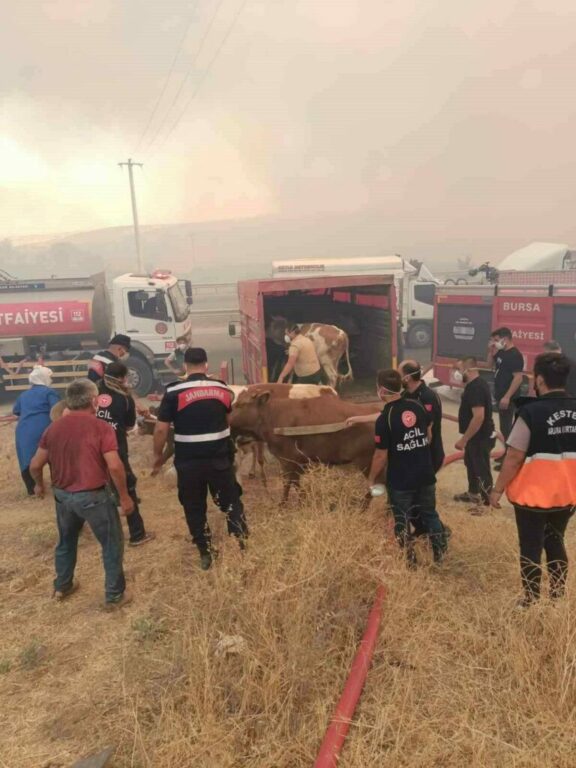 Bursa’nın Yenişehir ilçesinde çıkan orman yangınları Fethiye ve Seymen köyleri arasındaki hayvan çiftliklerini tehdit etti. Buradaki hayvanlar Bursa Büyükşehir Belediyesi ve jandarma ekiplerince kurtarıldı.