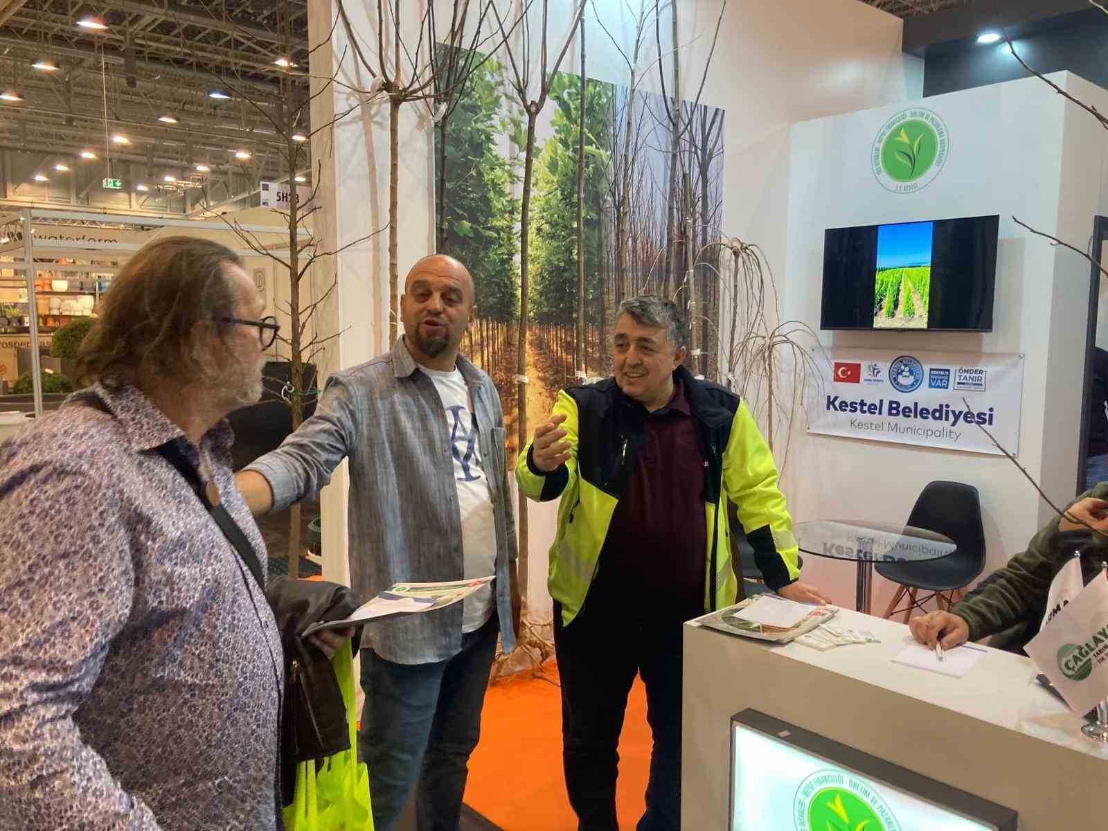 Başkan Güner, Kestel’in çalışkan insanlarının alın teri dökerek ürettiği bitkileri kooperatif olarak bu hassasiyetle en iyi şekilde pazarlayabilmek adına satış yapabilecekleri fuarlara dünyanın neresinde olursa olsun katılım göstereceklerini söyledi. Sadece yurt dışında değil yurt içinde de pek çok organizasyonlara katılarak ilçenin tanıtımına destek olacaklarını belirten Kooperatif Başkanı Ali Güner, “Üreticimizin çocuğu gibi bakıp büyüttüğü bitkileri hak ettiği değerde satabilmek için sadece yurt içinde değil Avrupa pazarlarında da bağlantılar yapmaya çalışıyoruz. Bu amaçla geçtiğimiz hafta katıldığımız dünyanın en prestijli organizasyonlarından biri olan Almanya IPM Essen Fuarı’na katılım gösterdik. Pek çok yabancı firma yetkilileriyle görüşüp ticari bağlantılar kurduk. Fuarlara katılımımız, hem sektörümüz hem de üreticinin ufkunu açacak bir dönüm noktası olacaktır. Umut ediyoruz ki, bu bağlantılarımızın karşlığı yıl içinde ilçemize gelecek yabancı alım heyetleriyle taçlanacaktır. Önümüzdeki yıllarda bu durum daha iyi anlaşılacaktır” diye konuştu.