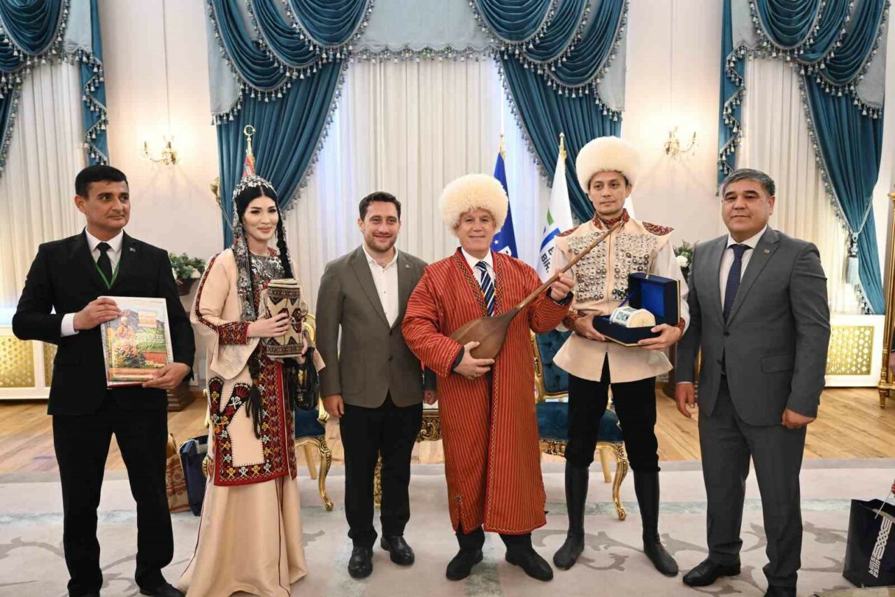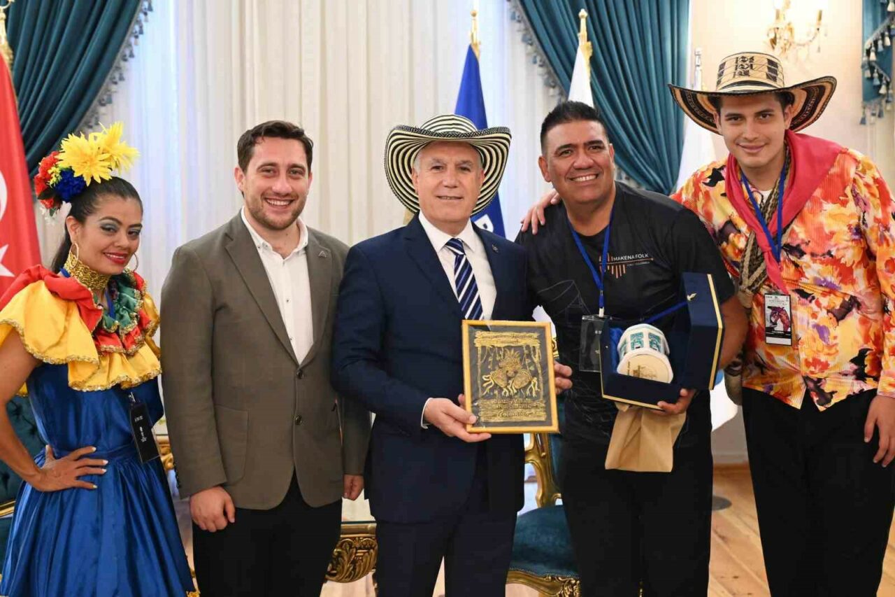 Bursa Büyükşehir Belediyesi adına Bursa Kültür Sanat ve Turizm Vakfı (BKSTV) tarafından düzenlenen 36. Uluslararası Altın Karagöz Halk Dansları Yarışması’na katılan 23 farklı ülke ve 26 yerel halk dansları topluluğunun temsilciler ile jüri üyeleri, Bursa Büyükşehir Belediye Başkanı Mustafa Bozbey’i ziyaret etti. BKSTV Yönetim Kurulu Başkanı Metin Atış’ın da yer aldığı ziyarette Başkan Bozbey, misafir ekiplerle samimi bir ortamda sohbet etti. Festivalle ülke kültürlerini buluşturarak dünyaya barış mesajları vermenin amaçlandığını söyleyen Başkan Mustafa Bozbey, birçok medeniyete ev sahipliği yapan Bursa’nın tarihinden aldığı güçlü mirası geleceğe taşıdığını belirtti. Bozbey, “Altın Karagöz de 36 yıldır dünya barışına katkı sunuyor. Bir hafta boyunca Bursa’mıza dansın ve müziğin büyüleyici harmonisini sunacak olan tüm sanatçılara teşekkür ediyorum. Bu yarışma, kültürler arası köprüler kurmamıza, birbirimizi anlamamıza ve değerlerimizi paylaşmamıza imkan sağlıyor. Tüm Bursalıları, bu renkli ve anlamlı etkinliklere katılmaya, dansın coşkusunu birlikte yaşamaya davet ediyorum” dedi.