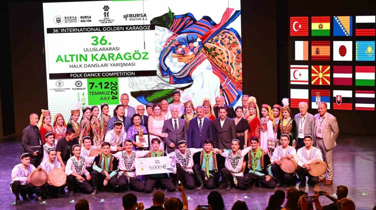 Bu yıl dünyanın 23 farklı ülkesinden gelen 720 dansçının katılımıyla düzenlenen 36. Uluslararası Altın Karagöz Halk Dansları Yarışması’nın birincisi Özbekistan oldu. Bursa’nın 17 ilçesinde yaptıkları gösterilerle yarışmanın coşkusunu kente yayan misafir dansçılar, şampiyonluk için tüm hünerlerini sergiledi.