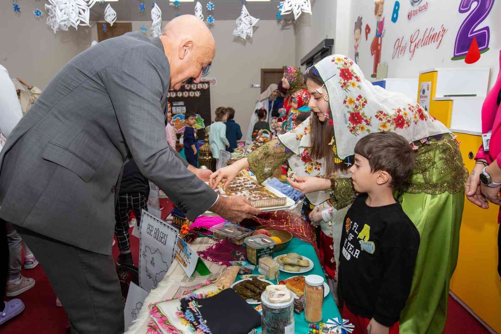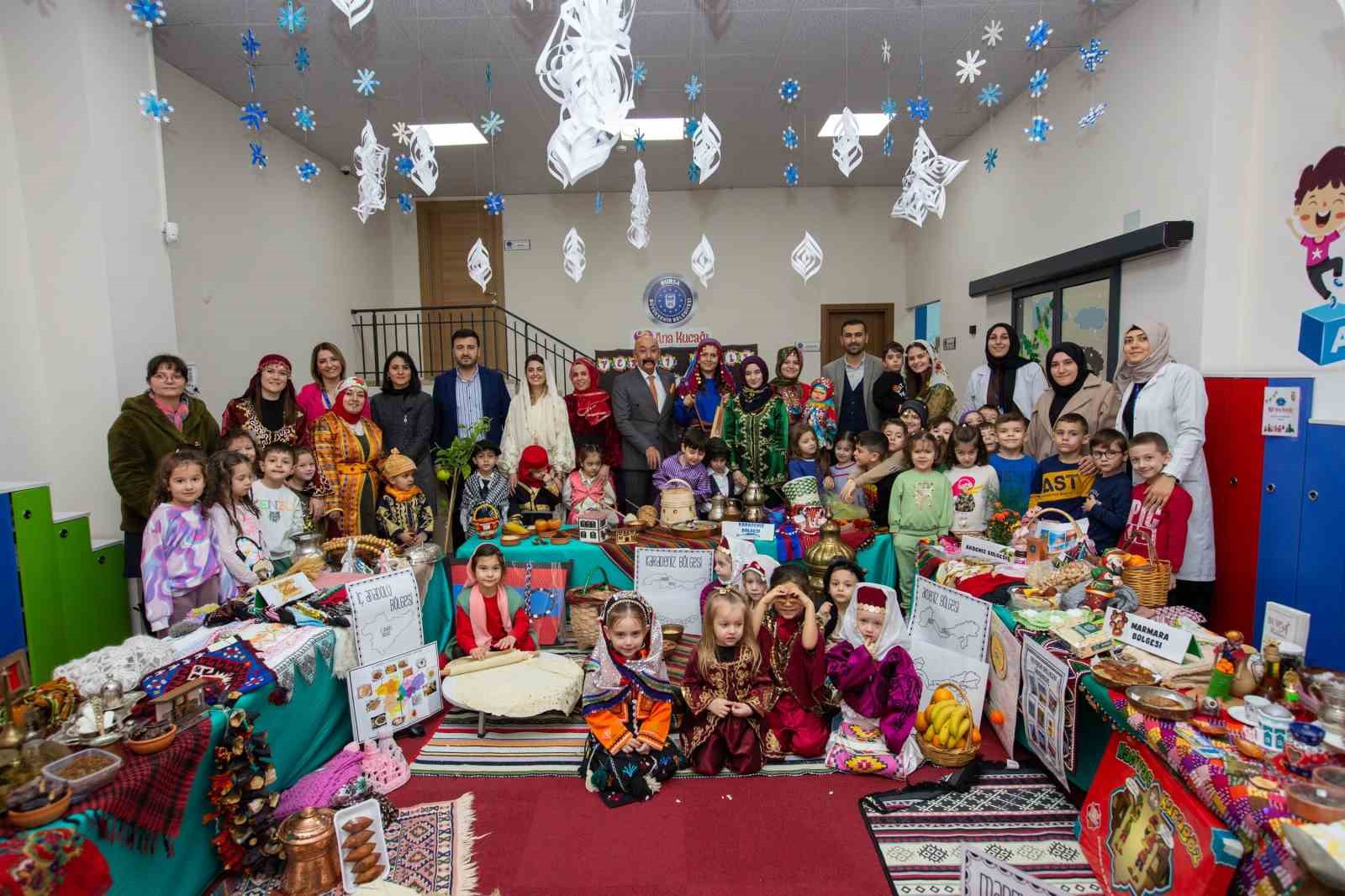 Büyükşehir Belediyesi’nin okul öncesi eğitimde bir marka haline gelen Ana Kucakları’nda eğitim gören minikler, ‘Yerli Malı Haftası’nı renkli bir programla kutladı. Türkiye’nin 7 bölgesine özgü yiyecek, kıyafet ve dans figürlerinin sergilendiği programda, çocuklar yerli malı kullanmanın önemini büyüklere anlattı.