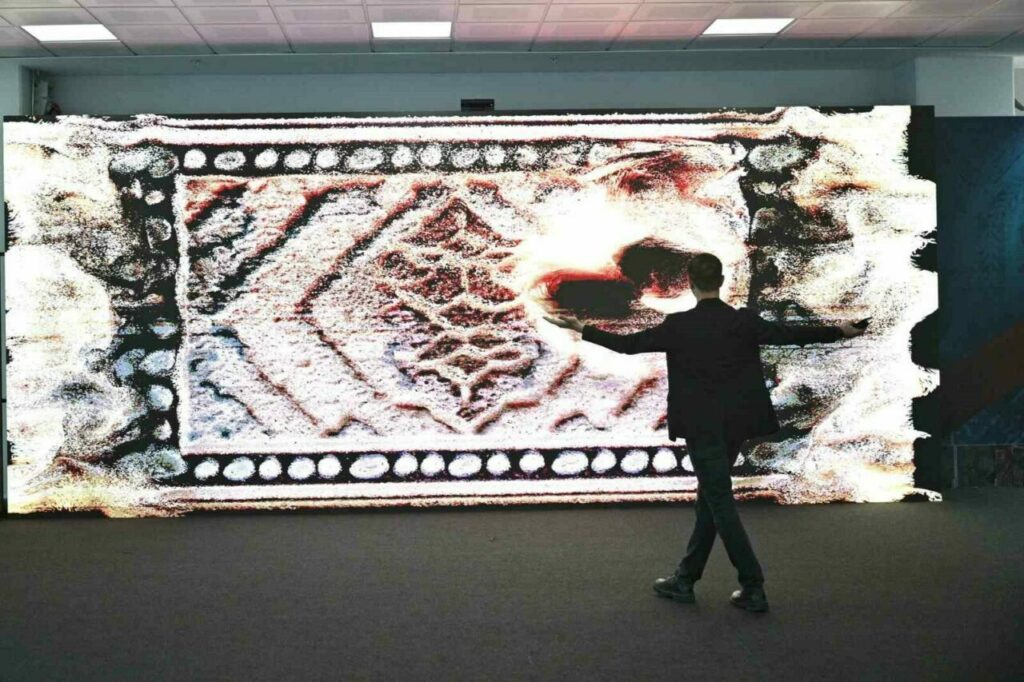 “Her dakika değişen bu desenler, kapalı bir bilgi kütüphanesinden faydalanarak dönemin mimari anlayışlarını, sanat eserlerini ve kültürel birikimini işliyor. Böylece ortaya çıkan motif, ilgili döneme referans veren bir yapıda oluyor. Ziyaretçiler, bu motiflerin karşısına geçtiğinde derinlik algılayıcılar tarafından tespit edilerek, motifleri adeta bir sıvı formu gibi hareket ettirebiliyor ve onun içinde gezinebiliyor. Yani burada tam anlamıyla bütüncül bir deneyim yaşanıyor.”