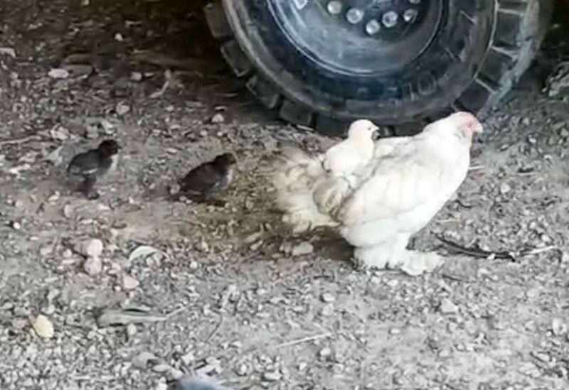 Beyaz civcivin anne sırtında keyifli gezintisi cep telefonuyla görüntülendi.